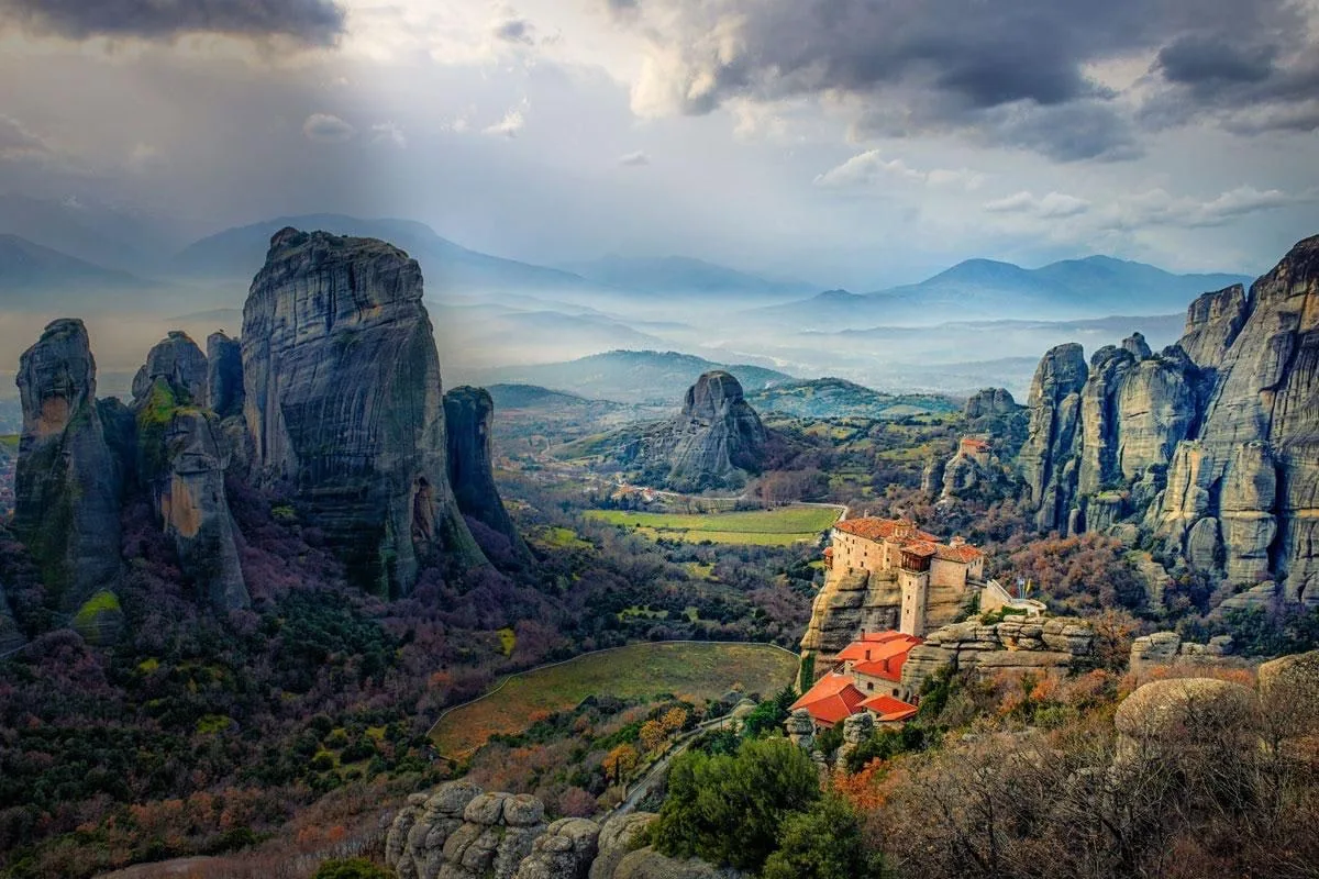 Греция, периферия Фессалия. Вид на монастырь в Метеорах.