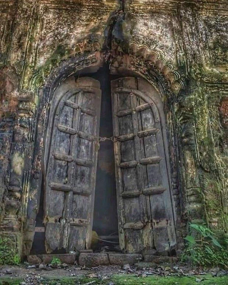 Дверь в древний заброшенный храм в округе Пурулия индийского штата Западная Бенгалия.