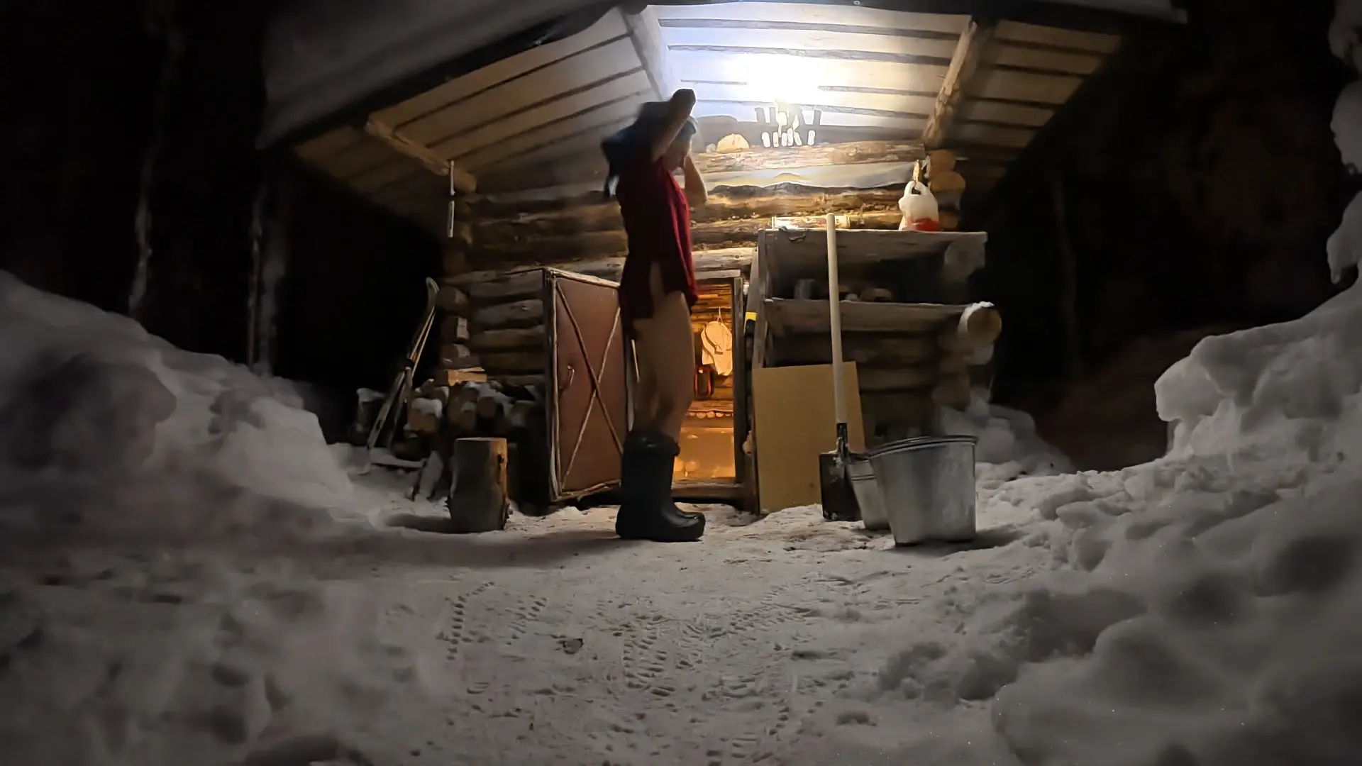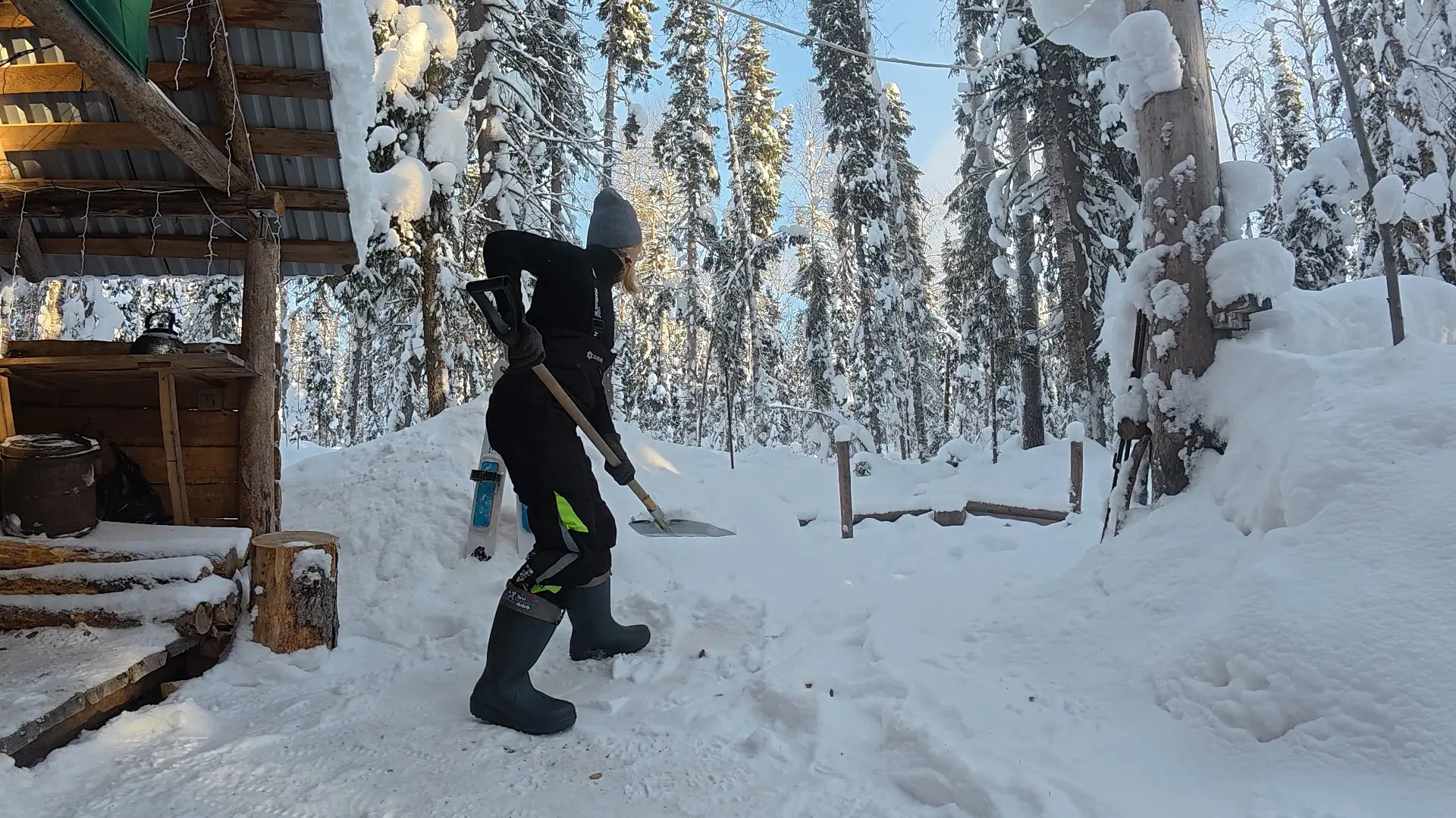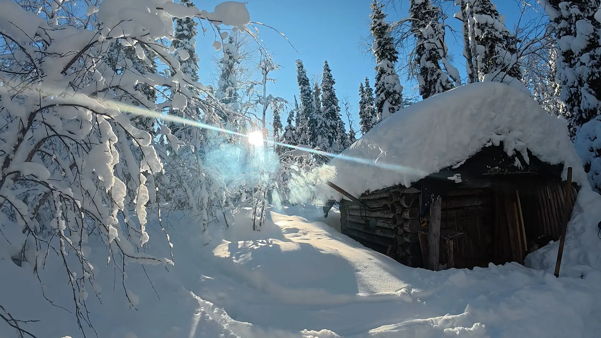 Чистка снега, заготовка дров, топка печи, нагрев воды для купаний, готовка, созерцание красоты, прогулки по окрестностям. И еще, десятки, каких-то мелких дел.