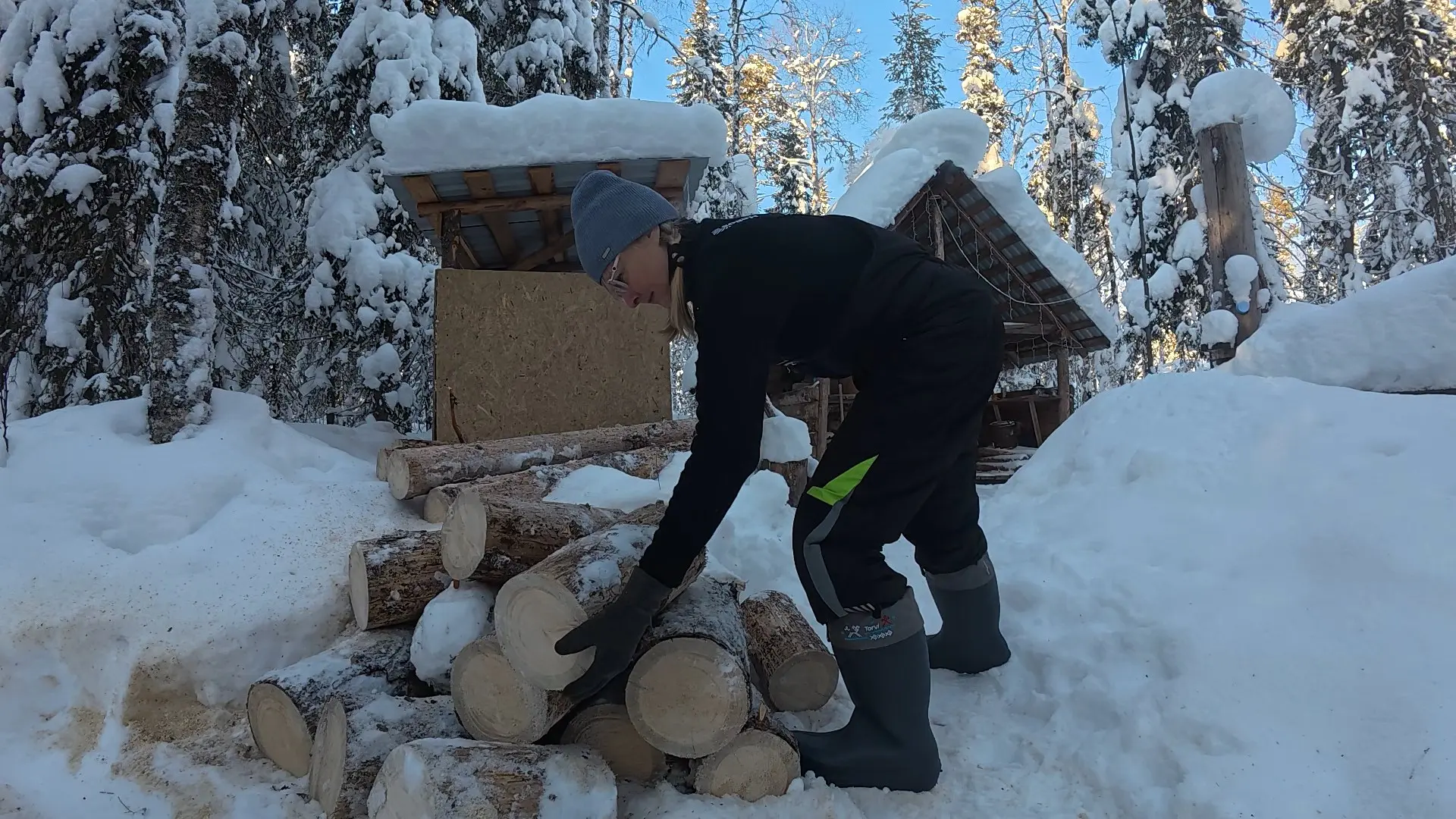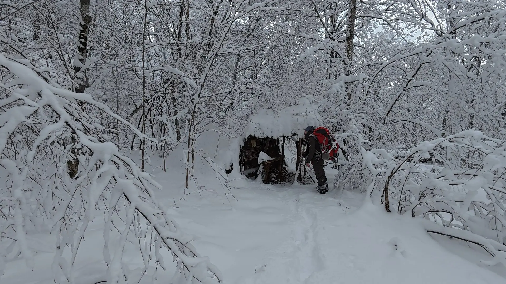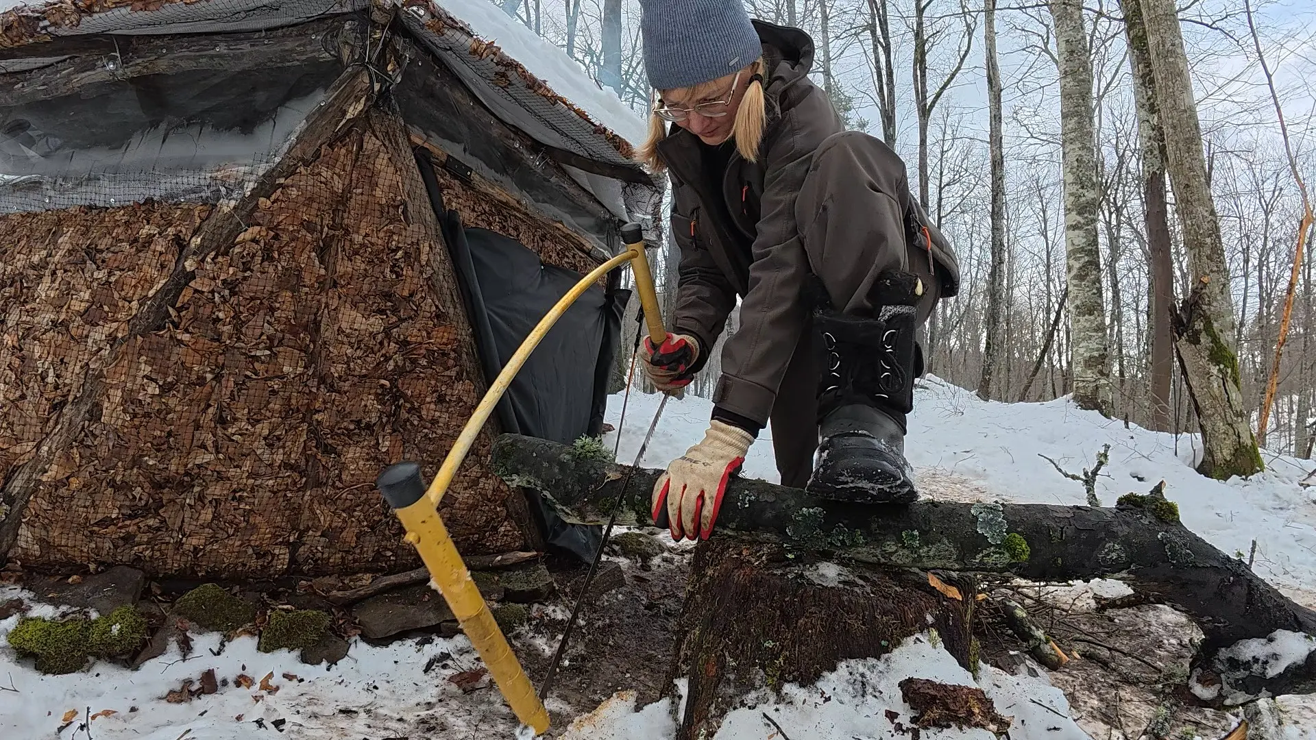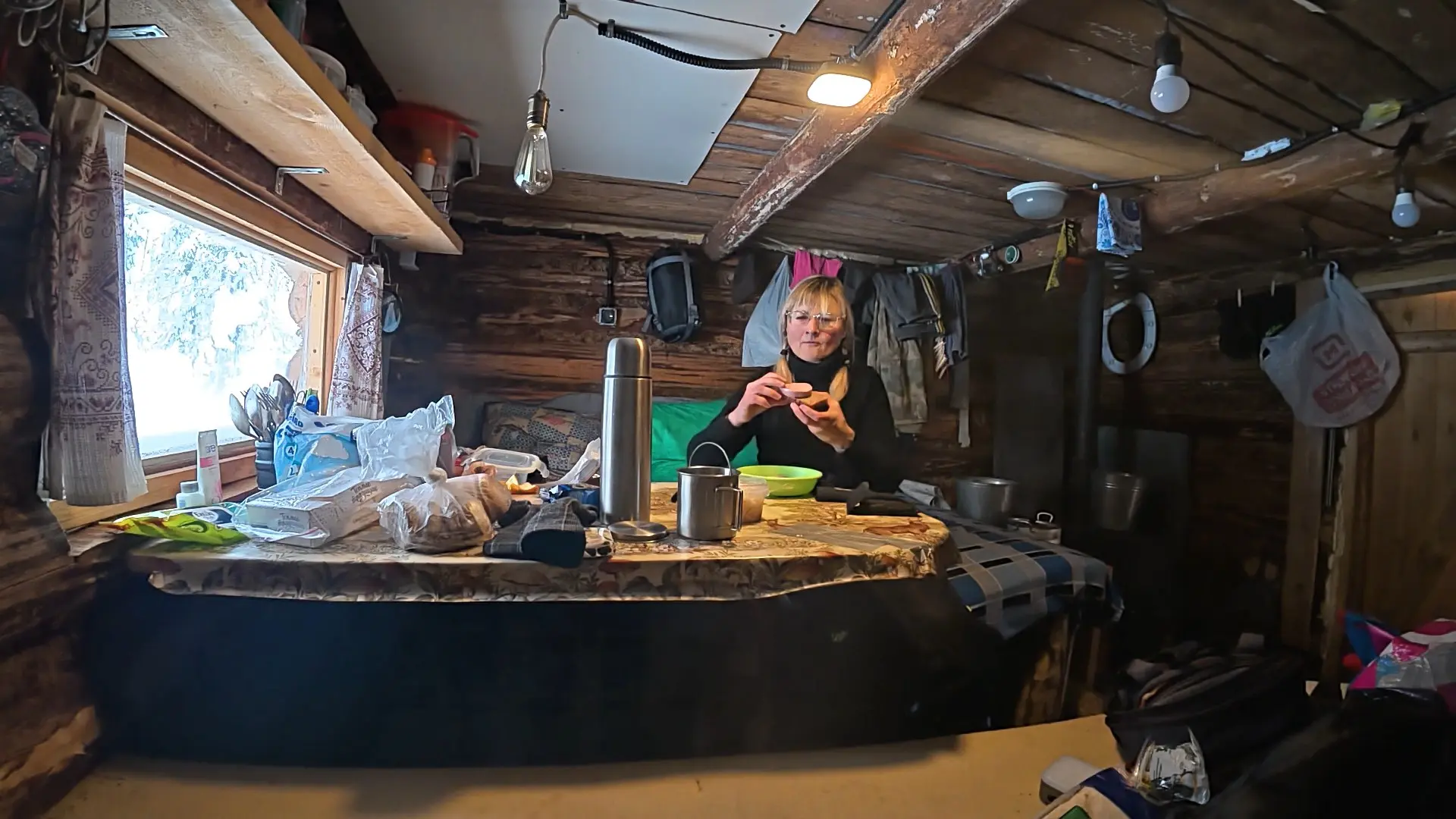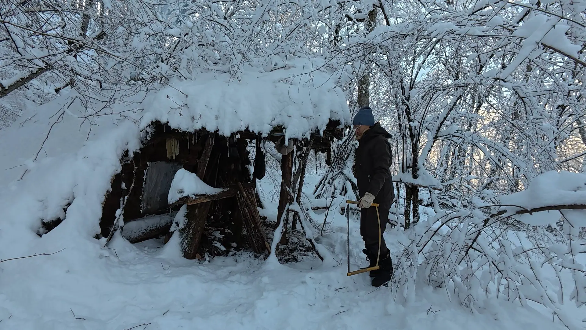 Но конечно, прибывание в зимнем лесу, да в далеко не теплой хижине - это не только история про восторг и любование красотой — нужно было выживать. Решать бытовые насущные вопросы.