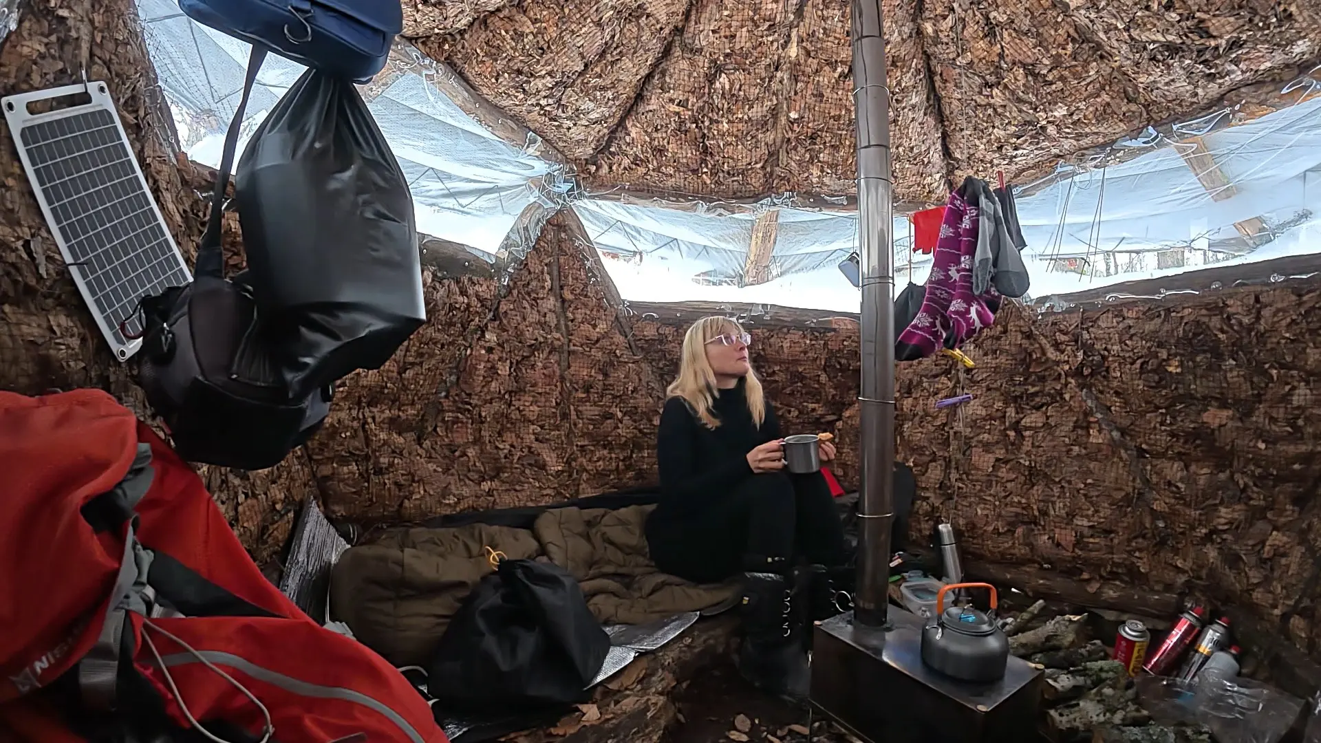 Установили лагерь, приготовили обед и залезли в палатку!