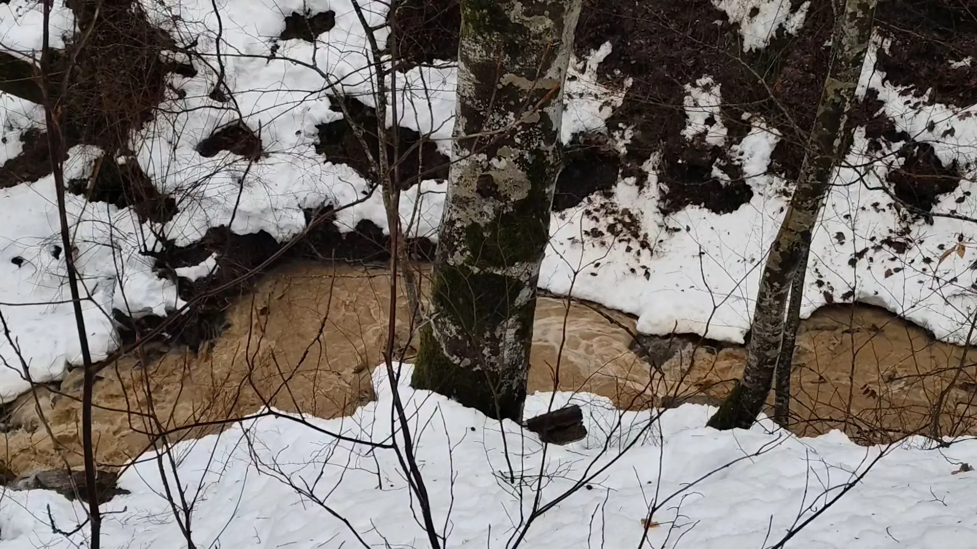 На улице то и дело шел дождь. Снег таял. Со всех склонов, бурными потоками, стекали ручьи.