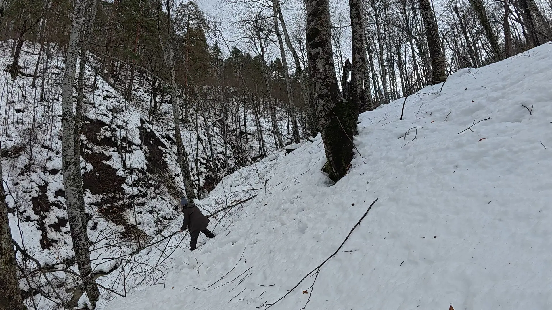 Весь путь до хижины занял более 6 часов. Помимо реки пришлось идти по сугробам в 30-40-50 см.