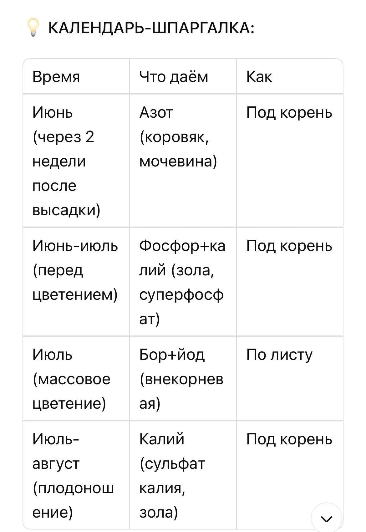 • Перед высадкой — только калий и фосфор: 1 ст.л. сульфата калия + 1 ст.л. суперфосфата на 10 л воды.