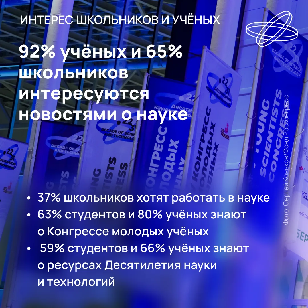 Цифры показывают, что интерес к отечественной науке остаётся высоким, школьники усиливают курс на научную карьеру, а общество видит в учёных доверенных экспертов. Подробнее об этом читайте на сайте Наука.рф