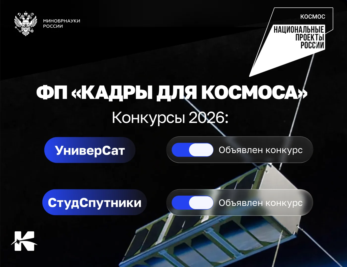 В планах на 2026 год — запуск 28 малых космических аппаратов. Конкурсы «УниверСат» и «СтудСпутники» реализуются по национальному проекту «Развитие космической деятельности Российской Федерации на период до 2030 года и перспективу до 2036 года».