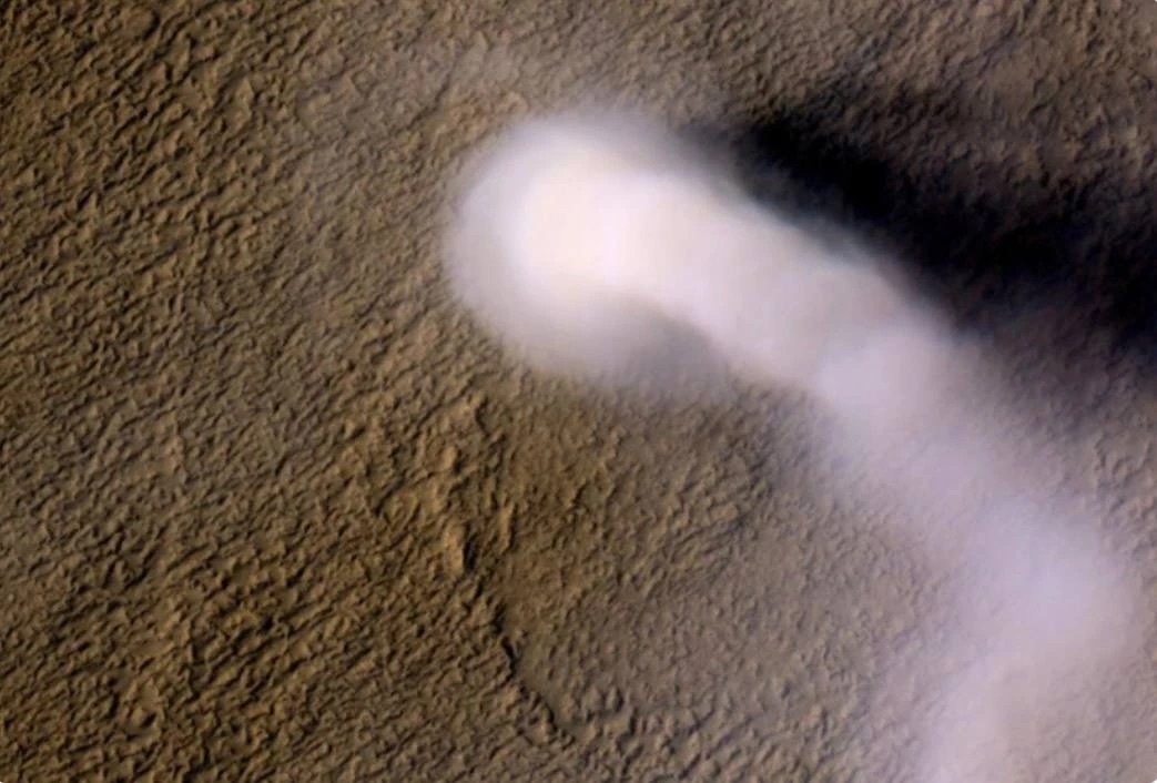 Пылевой вихрь на Марсе, снятый аппаратом Mars Reconnaissance Orbiter