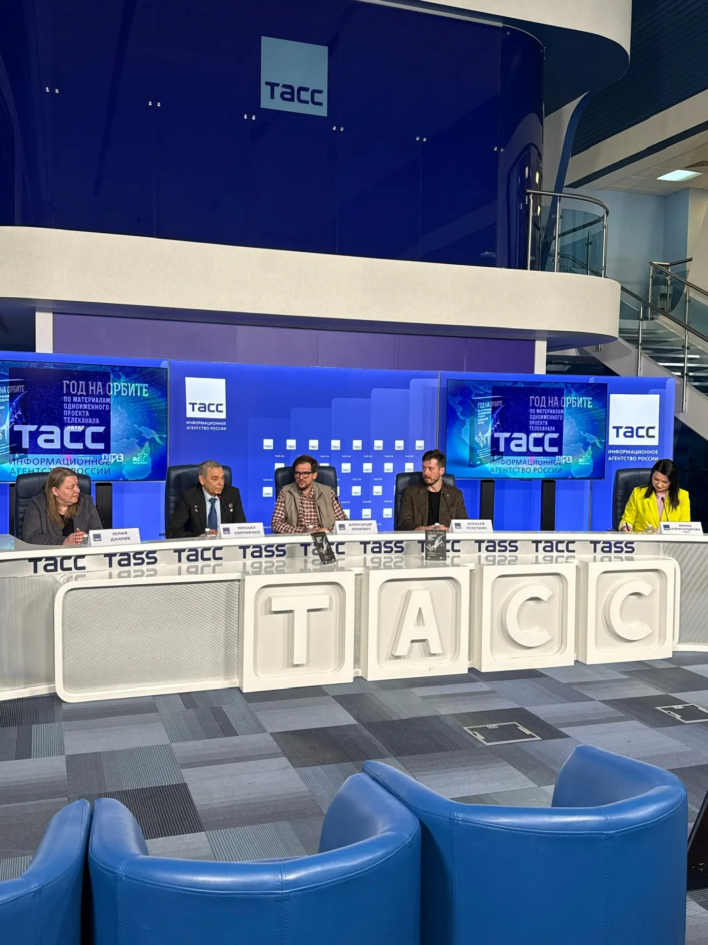 Друзья, в пресс-центре ТАСС состоялась презентация книги «Год на орбите», которая создана по материалам одноименного фильма телеканала «Наука».