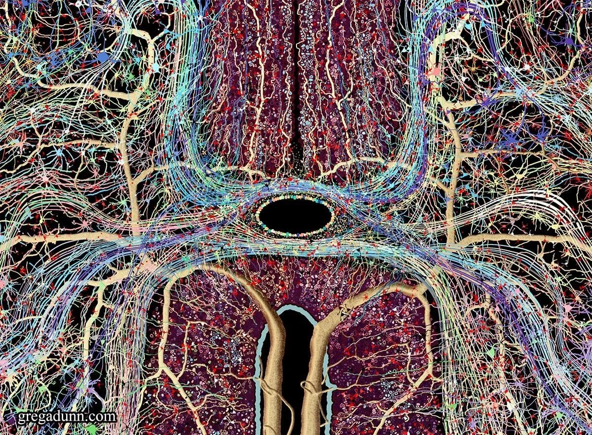 Художник-нейробиолог Грег Данн восхищается устройством мозга и превращает переплетение клеток в настоящее искусство.