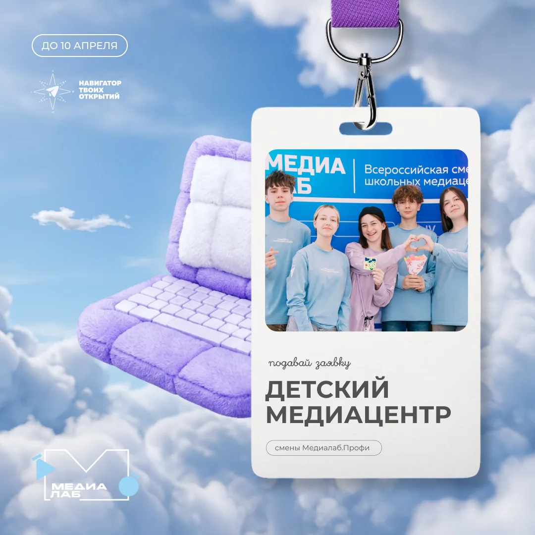 Едешь на смену «МедиаЛаб.Профи» с 11 по 24 апреля? Тогда стань участником медиацентра нашей программы — это команда из 10 ребят, которые будут освещать все события смены, снимать фото и видео, создавать яркие посты и придумывать креативные идеи!