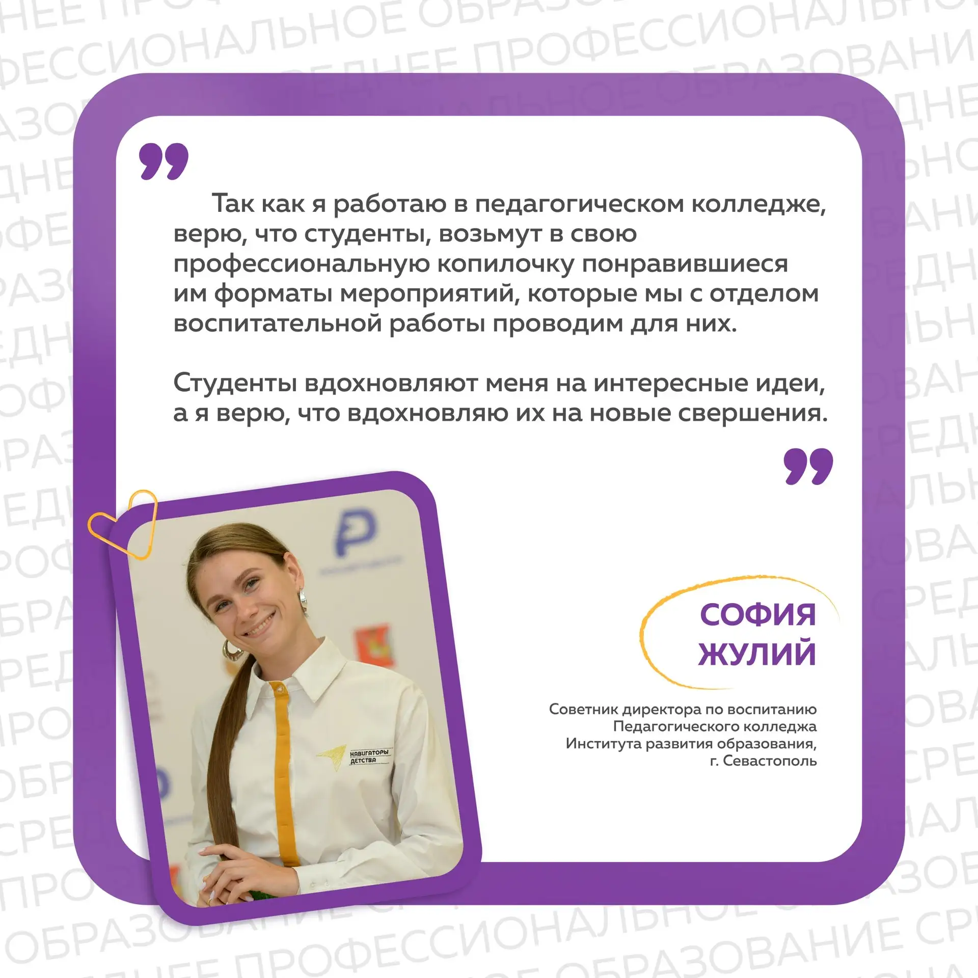 Государство создаёт условия для постоянного развития среднего профессионального образования, а педагогические коллективы ежедневно работают над повышением качества обучения, чтобы выпускники становились квалифицированными специалистами.