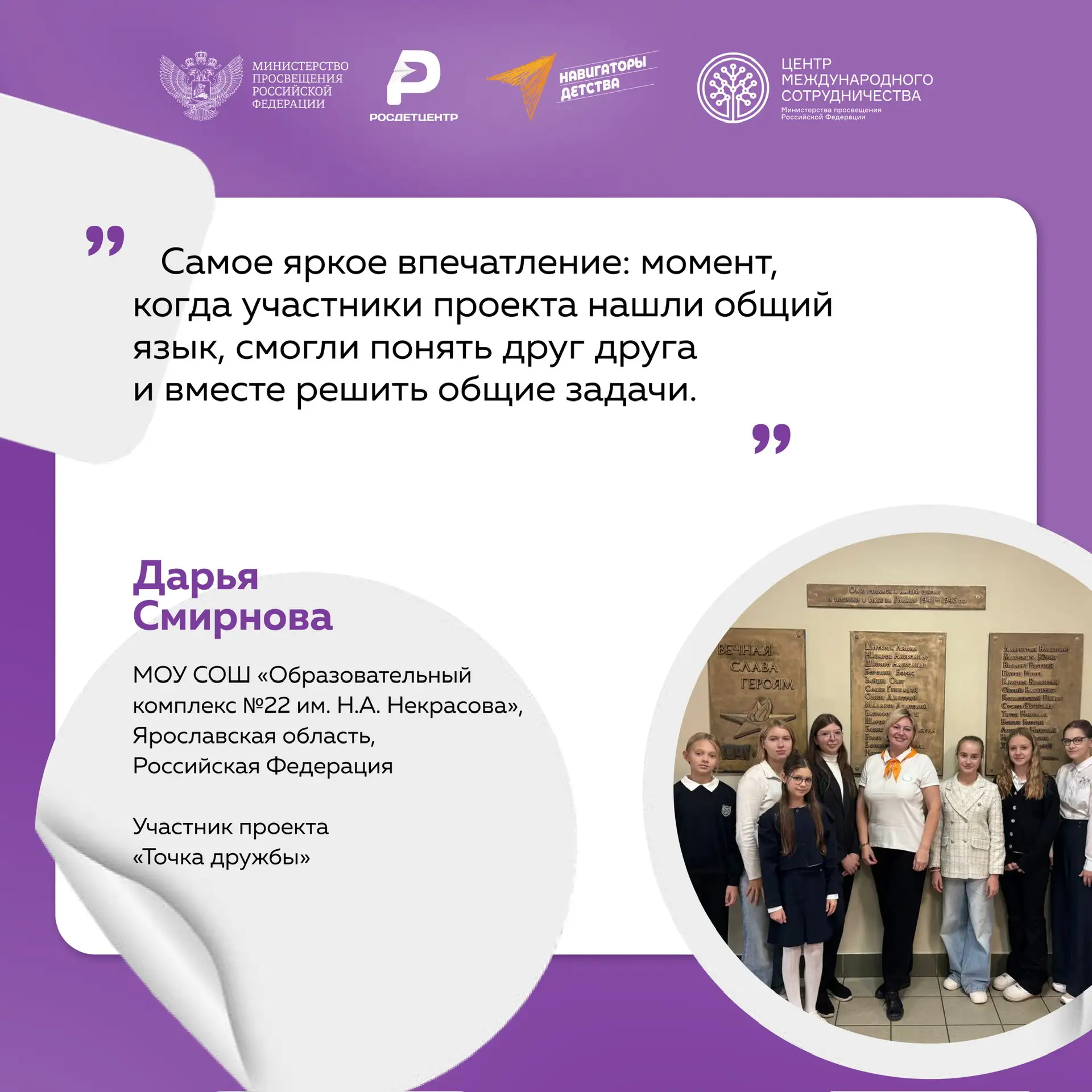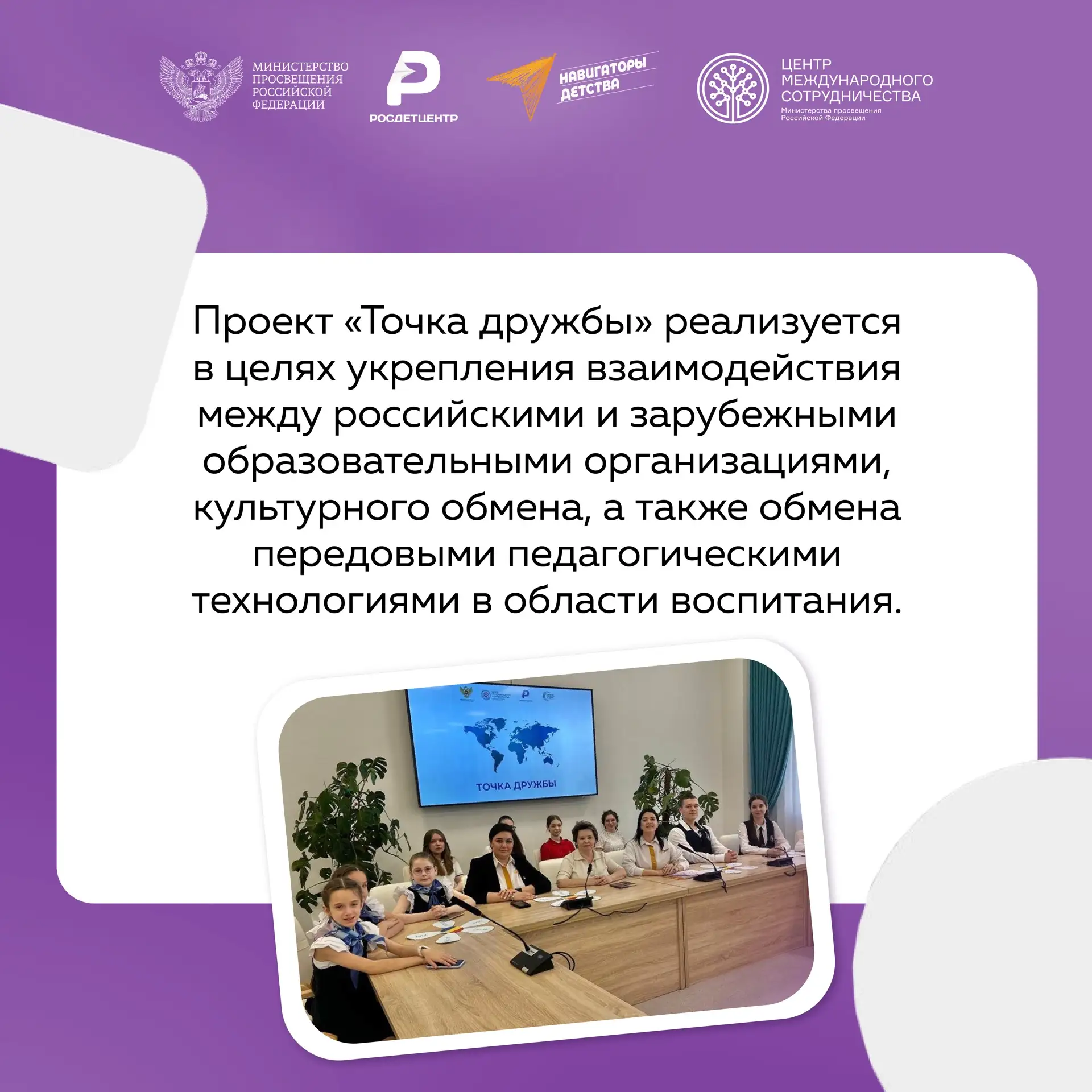 «Точка дружбы» объединяет ребят из разных уголков нашей планеты, создавая пространство для общения, которое преодолевает любые расстояния.