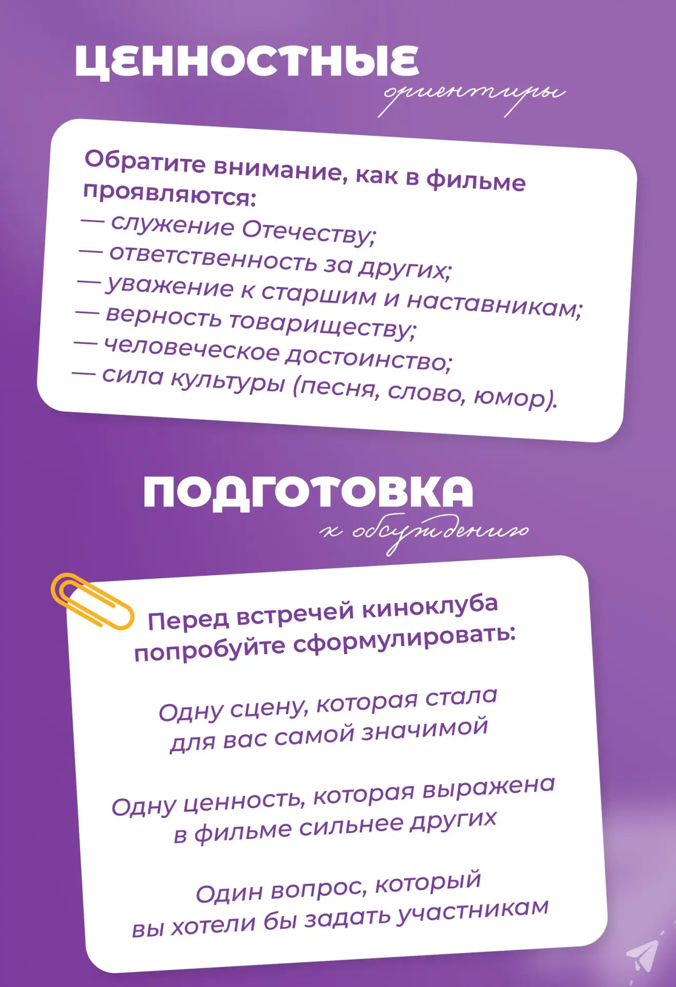 ✍️ Вместе с экспертами кинопедагогики из кинотеатра «Ноль Плюс» — Николаем Данном и Петром Агеевым — делимся советами о том, как подготовиться к совместному обсуждению и самостоятельно проанализировать фильм.