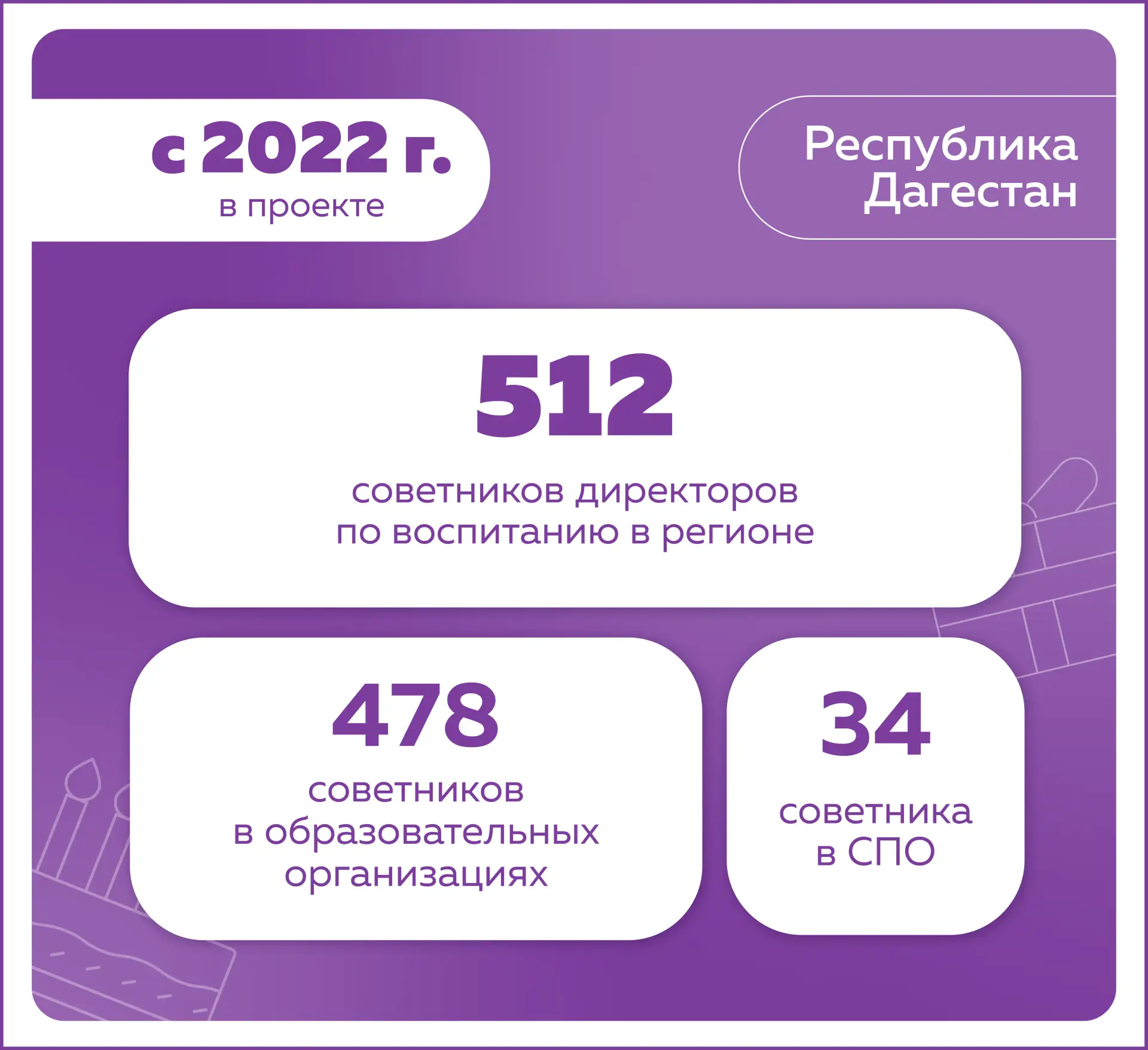 🔸 В Республике Дагестан советник директора по воспитанию победила в конкурсном отборе «Лучших управленческих кадров в системе образования Республики».