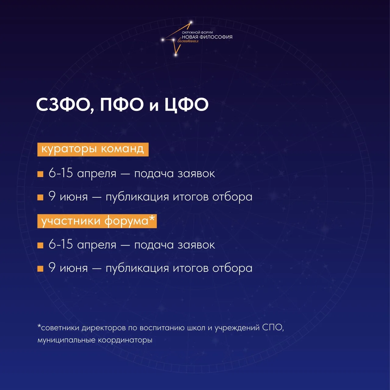 Напоминаем, что регистрация на окружные форумы «Новая философия воспитания» второго полугодия открыта до 15 апреля!