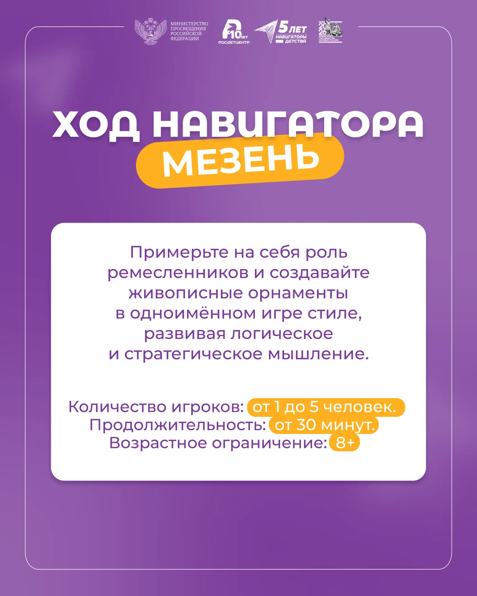 В новом выпуске #ХодНавигатора специалисты регионального ресурсного центра познакомили зрителей с настольной игрой «Мезень», в основу которой легли культурные мотивы и роспись народов севера России.
