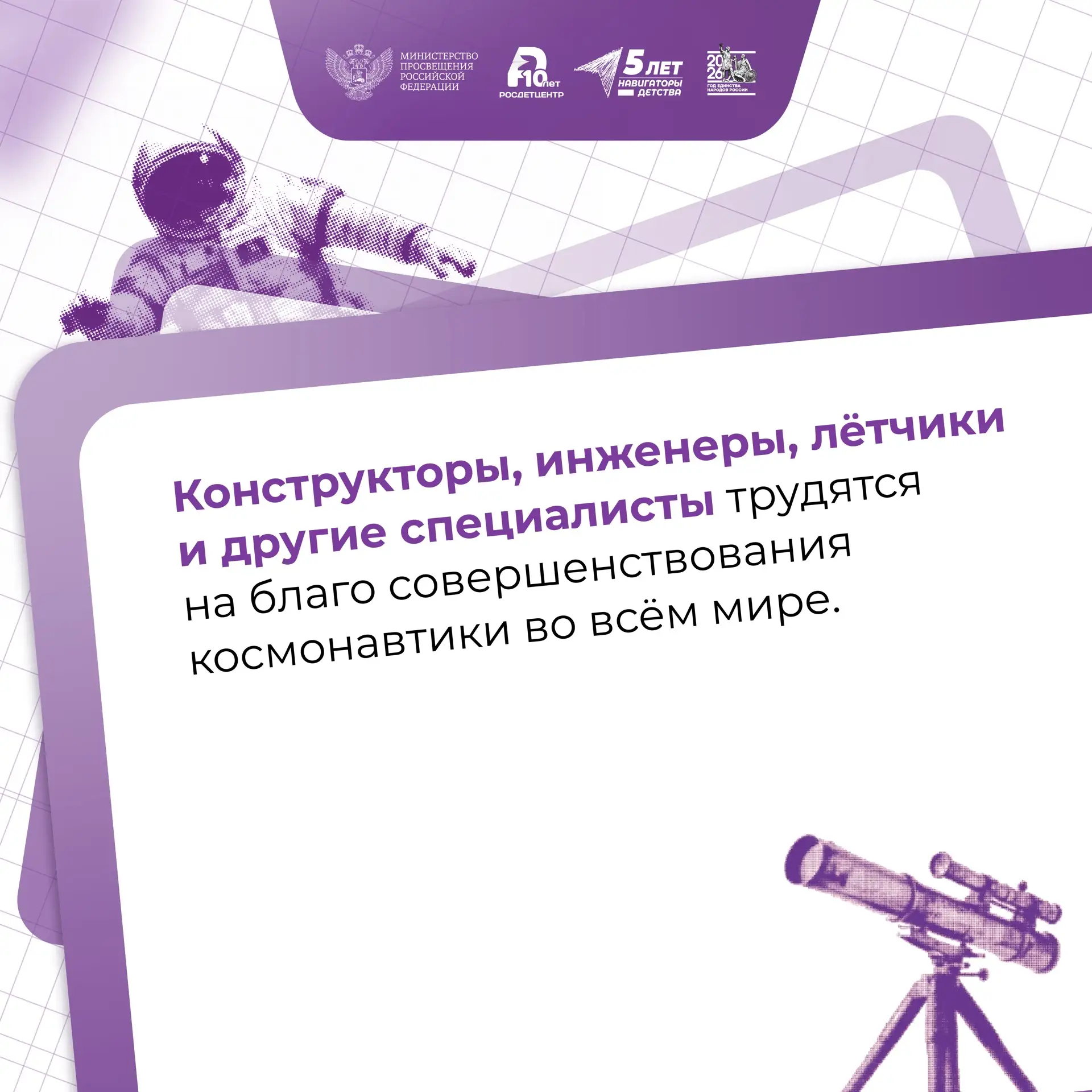 📖 Особые слова благодарности в этот день глава Минпросвещения России выразил учёным, инженерам, исследователям, конструкторам и всем специалистам, чей гений и неоценимый вклад в развитие космической отрасли сохраняют и приумножают лидерство России в покорении космоса.