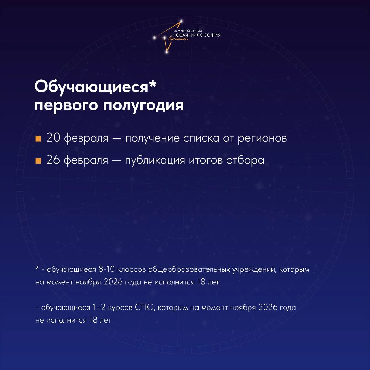 Через несколько дней стартует прием заявок на окружные форумы 2026 года. Следите за анонсами, чтобы ничего не пропустить!