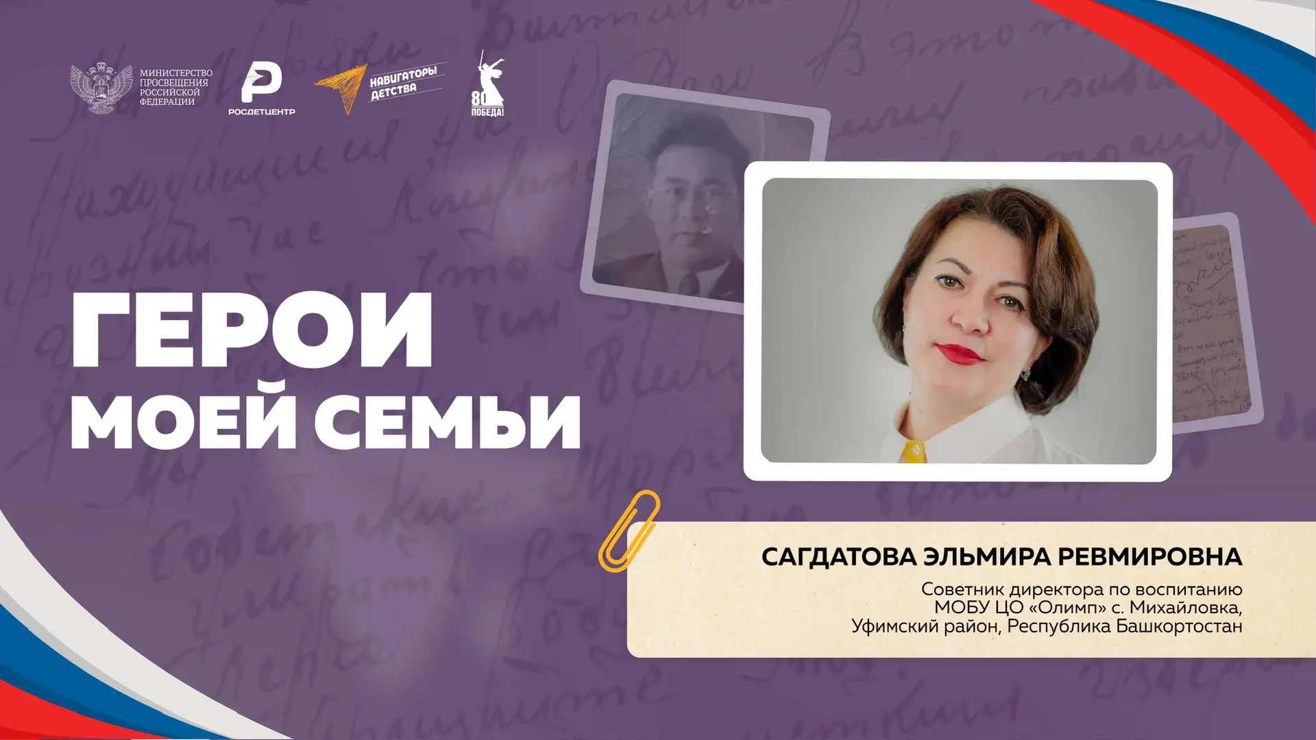 Сегодня о своём герое расскажет Эльмира Сагдатова — советник директора по воспитанию Центра образования «Олимп», Республика Башкортостан.