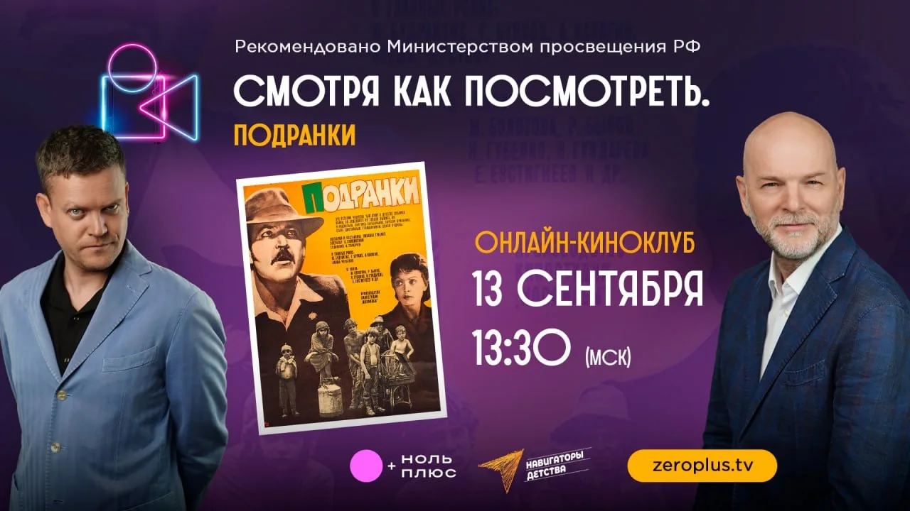 При поддержке онлайн-кинотеатра «Ноль Плюс» на прямых эфирах киноклуба «Смотря как посмотреть» эксперты, Николай Данн и Петр Агеев, в помощь педагогам разбирают фильмы, вошедшие в список рекомендованных Министерством Просвещения РФ к просмотру, и то, как обсуждать их с детьми и подростками.