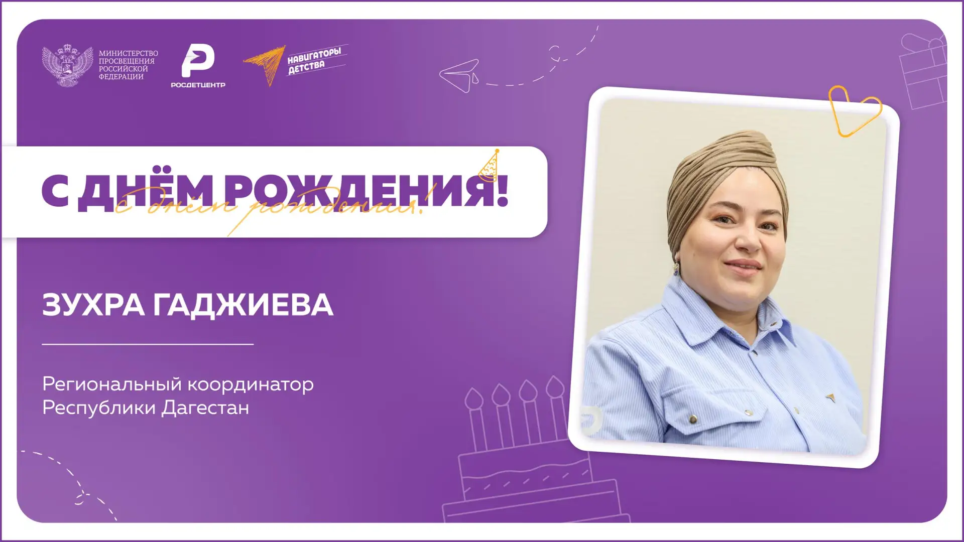 Сегодня наш оранжевый самолётик несёт тёплые пожелания в Республику Дагестан, где свой день рождения отмечает Зухра Гаджиева, региональный координатор проекта 🤩
