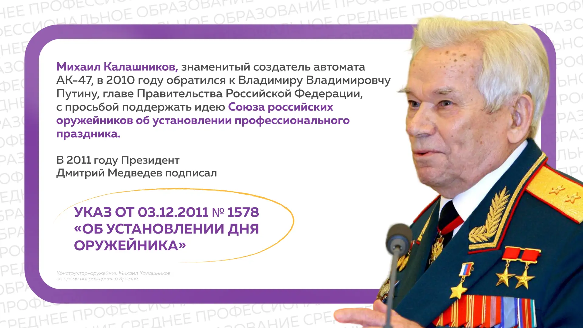 Особое значение этот день имеет на родине легендарного автомата АК-47, в Ижевске, а также в Туле, где расположен один из старейших оружейных заводов России.