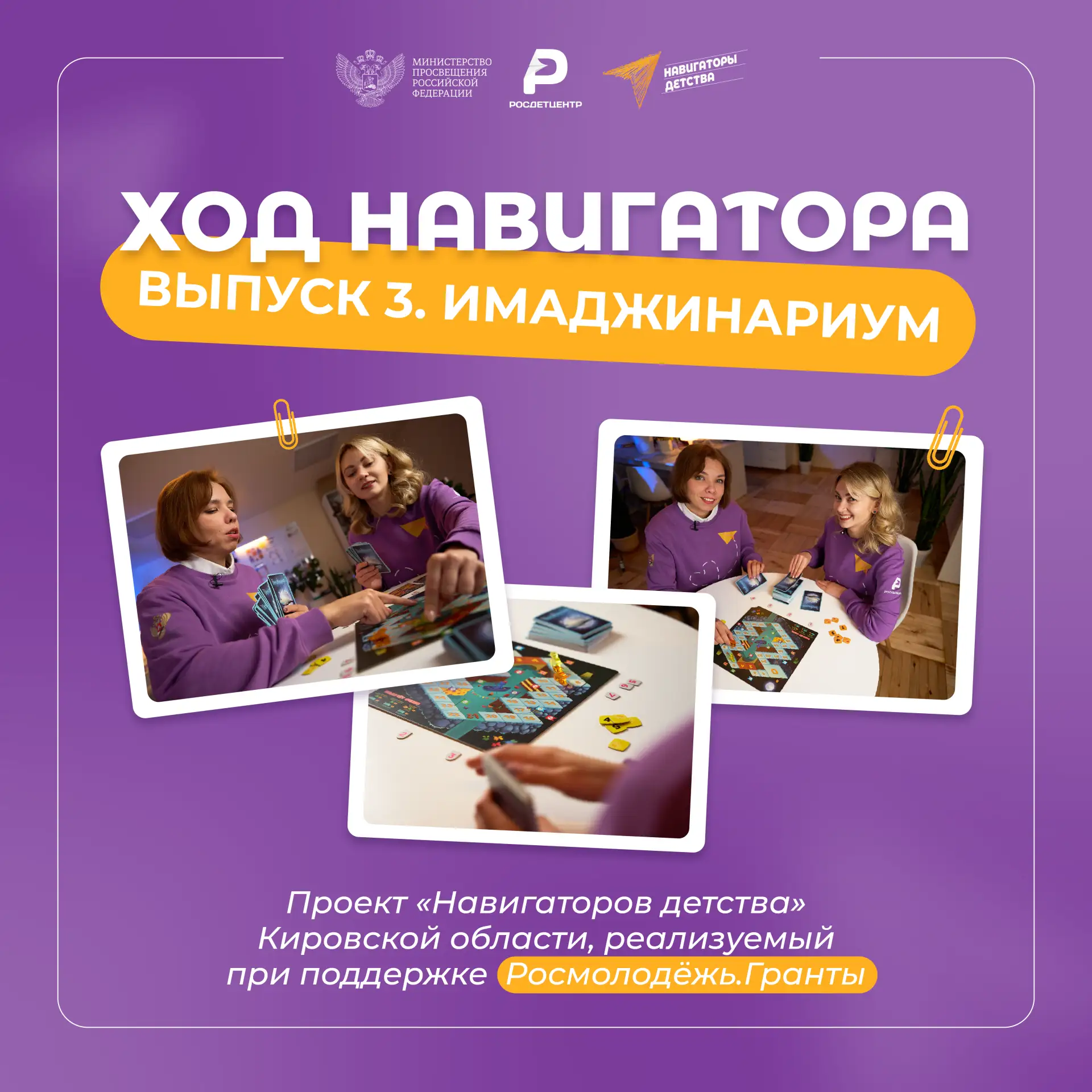 Воспитательный проект «Ход Навигатора», реализуемый при поддержке Росмолодёжь.Гранты, продолжается. «Навигаторы детства» Кировской области выпускают серию видеороликов о том, как отечественные настольные игры помогают в работе с детьми и молодёжью.