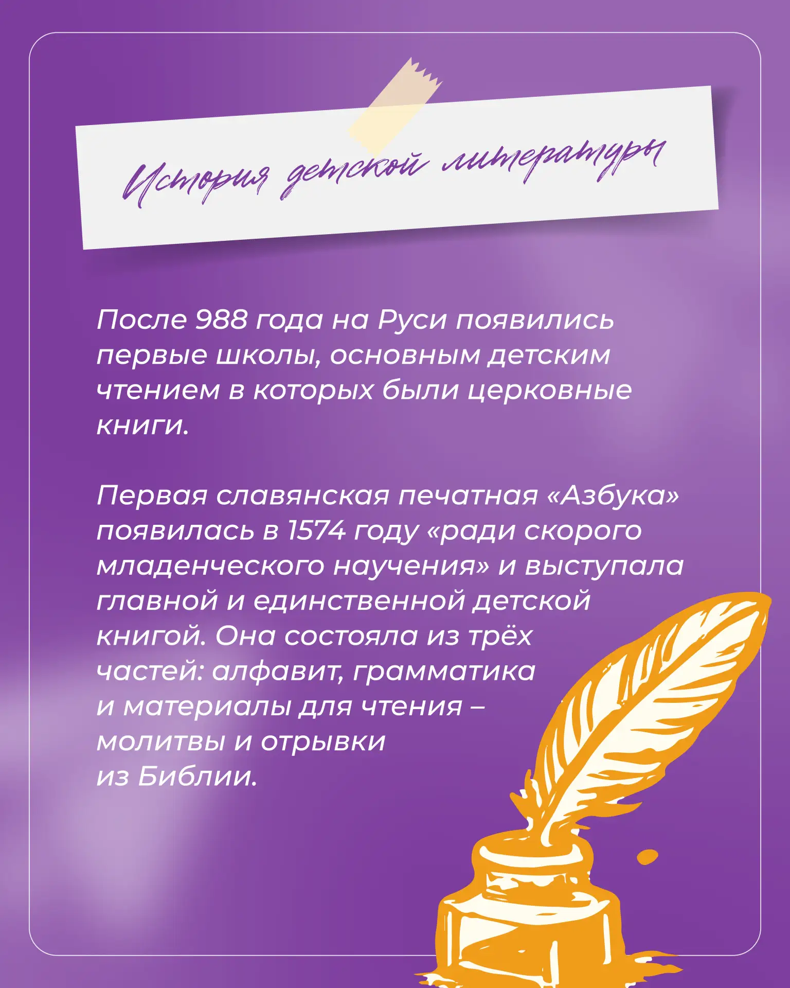 В карточках рассказываем об истории детской книги в России и её значении в воспитательном процессе — от первых изданий до современных форматов 📖