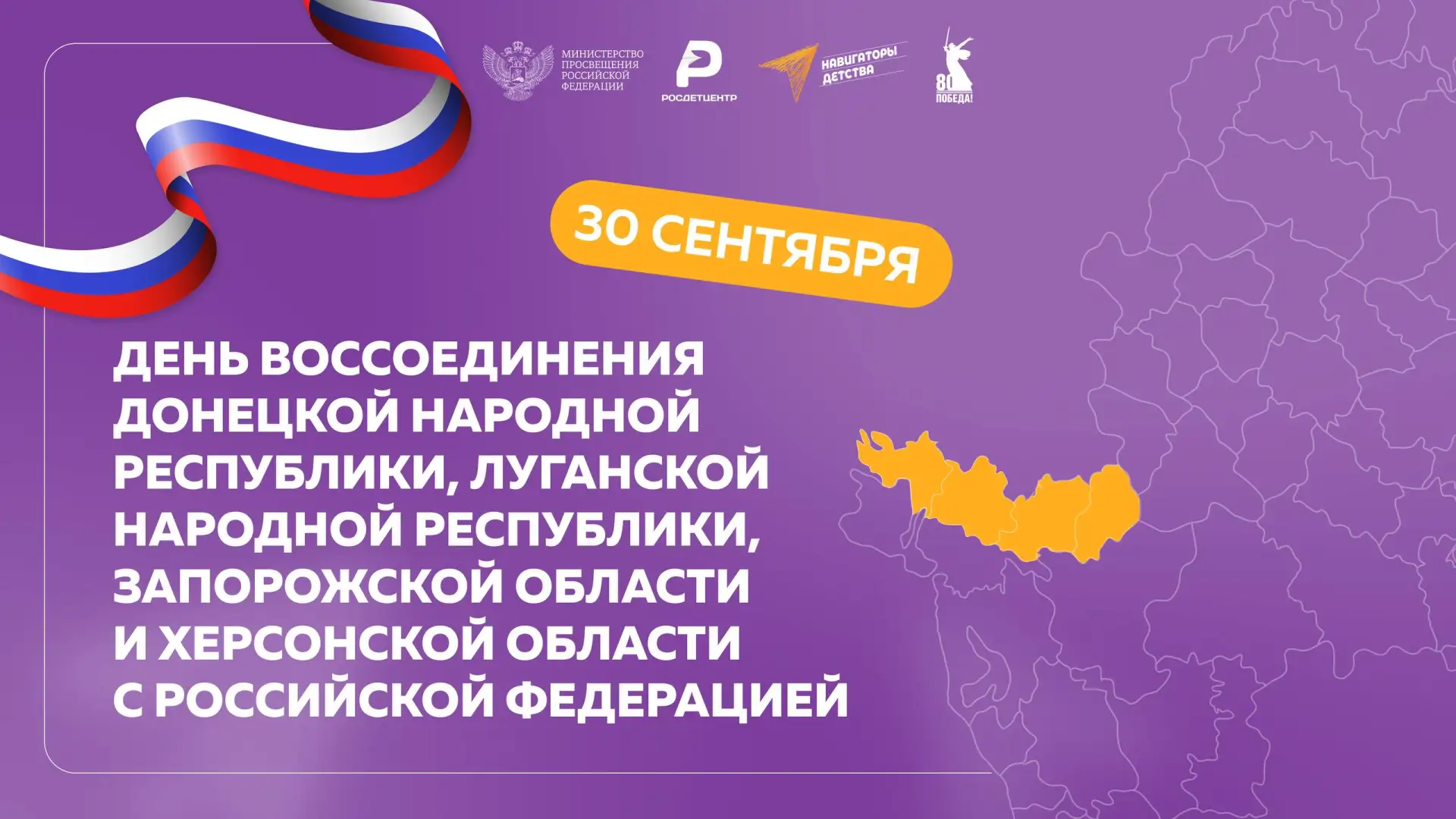 В преддверии Дня воссоединения Донецкой Народной Республики, Луганской Народной Республики, Запорожской области и Херсонской области с Российской Федерацией советники директоров по воспитанию совместно с обучающимися школ и учреждений СПО в рамках акции «Маршрутами воспоминаний» поделились личными историями и фотографиями, связанными с историческими территориями, а также провели игру «Возвращение истории», благодаря которой подробнее узнали о важном событии для нашей страны.