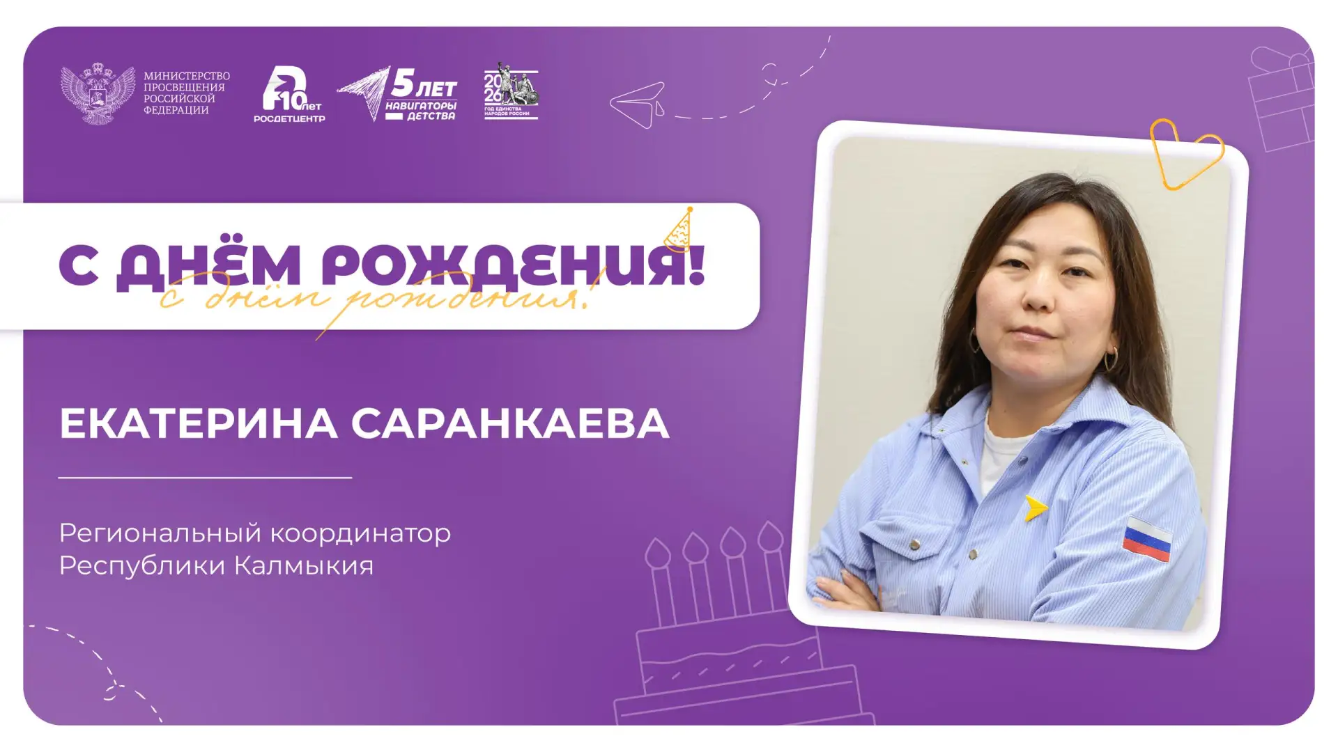 Сегодня тёплые слова от нашей большой команды отправляются в Республику Калмыкия, где празднует свой день рождения Екатерина Саранкаева — региональный координатор проекта!