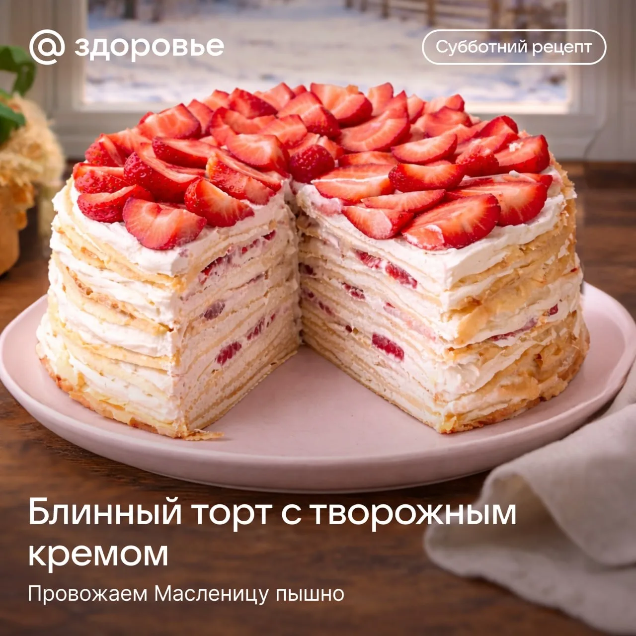 4️⃣ Остудить блины. Собрать торт: блин — крем — блин — крем — слой ягод. Повторять, пока не закончатся ингредиенты.