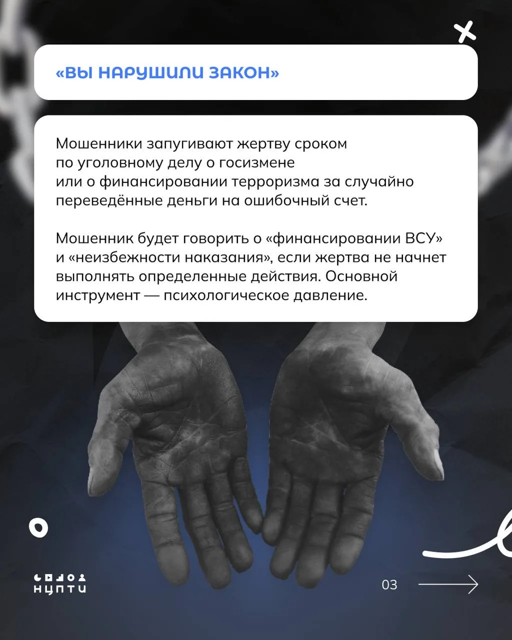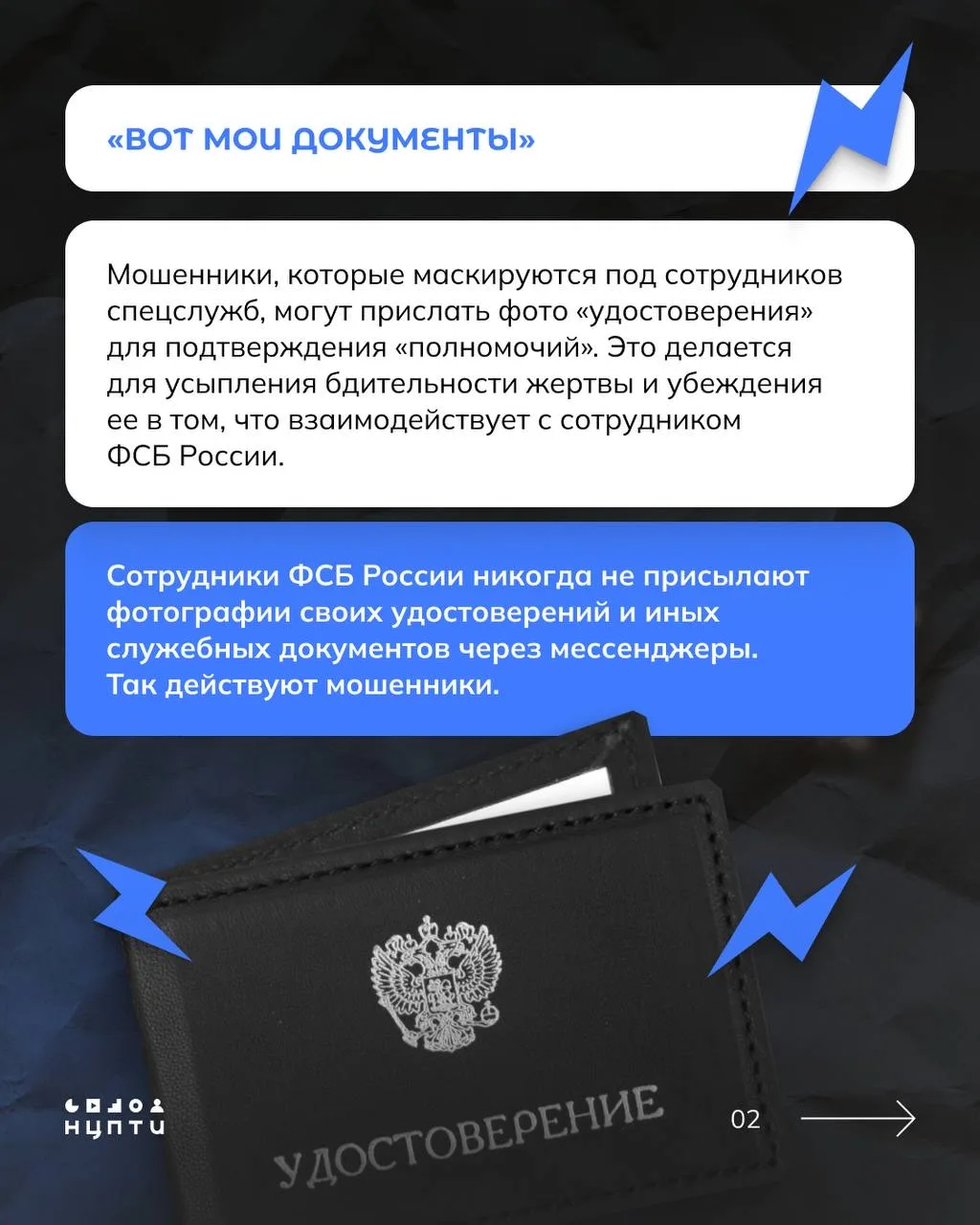 НЦПТИ совместно с коллегами из УФСБ России по Ростовской области подготовили карточки с описанием основных схем и защиты от вербовки.