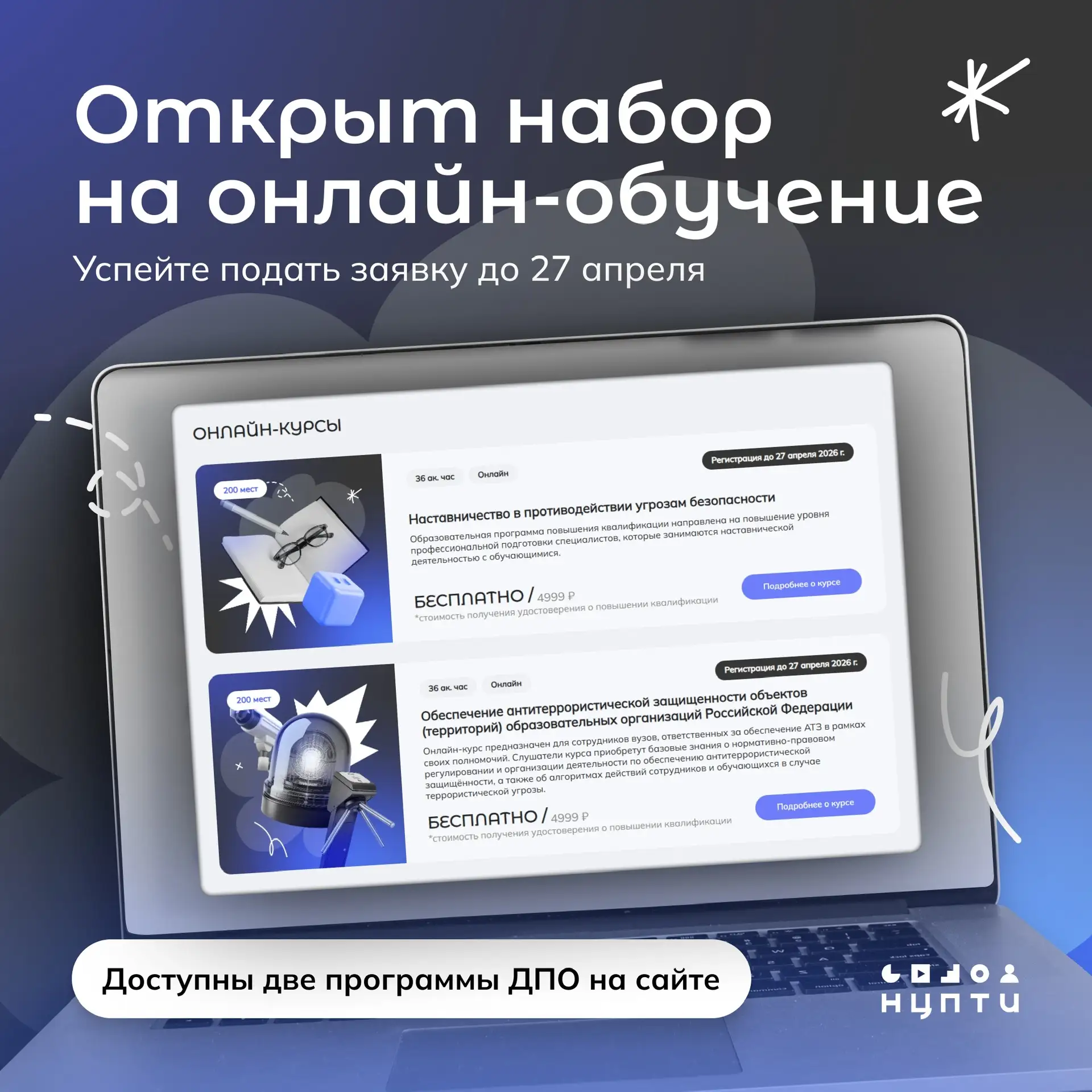 Успейте подать заявку до 27 апреля на сайте НЦПТИ: нцпти.рф/обучение