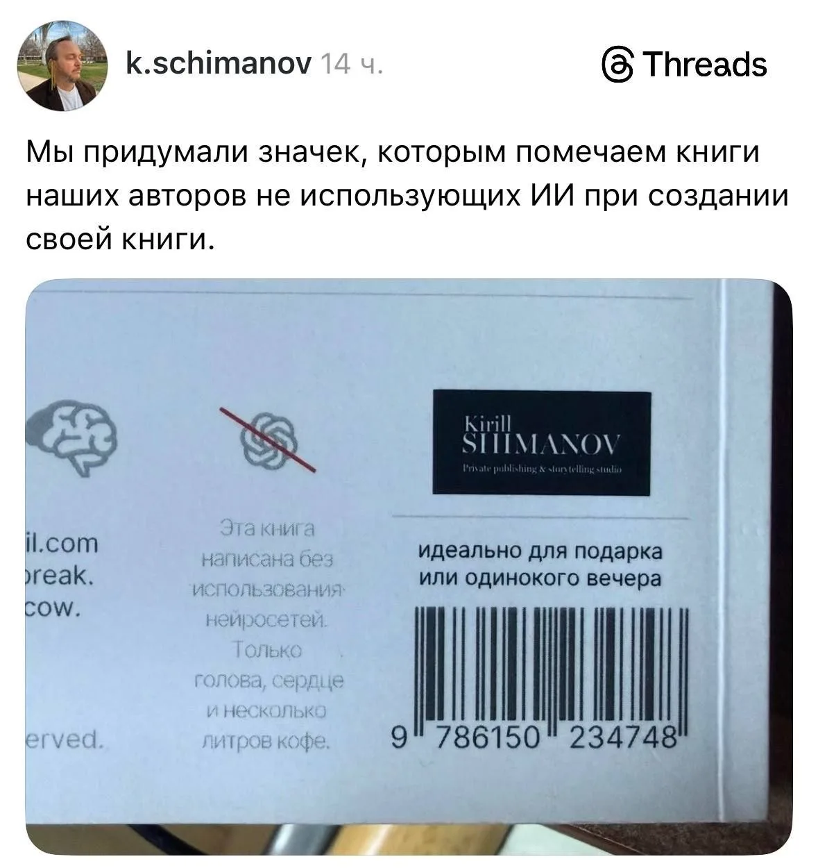 На книгах стали делать пометки о том, что текст написан без использования ИИ.