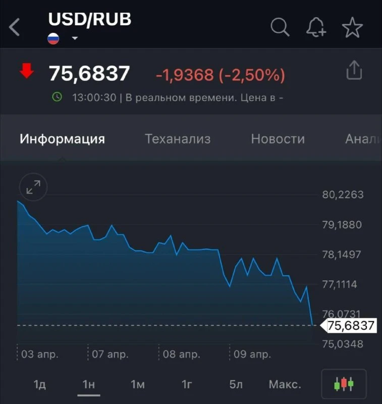 Доллар рухнул до 75 рублей последний раз такое происходило в декабре 2023 года