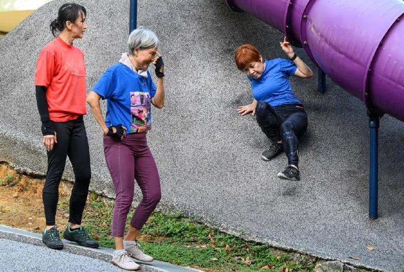 В Сингапуре пенсионеров учат паркуру, чтобы они меньше травмировались в обычной жизни.