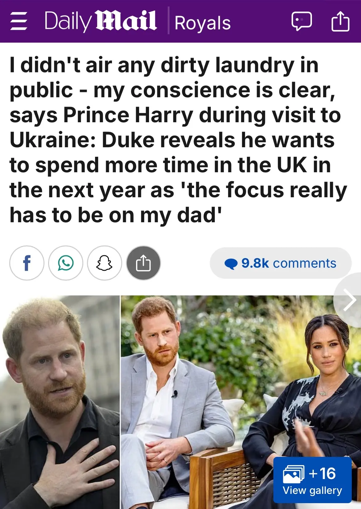 Какой же принц Гарри все-таки дешевый клоун. Сначала он выпустил воспоминания, где облил грязью свою семью и особенно брата. Заработал на этом прилично так денег. А теперь пытается замириться с отцом (тот как раз умирает) и представить дело так, будто вся изложенная им грязь была всего лишь «ответом на то, что уже было в таблоидах».