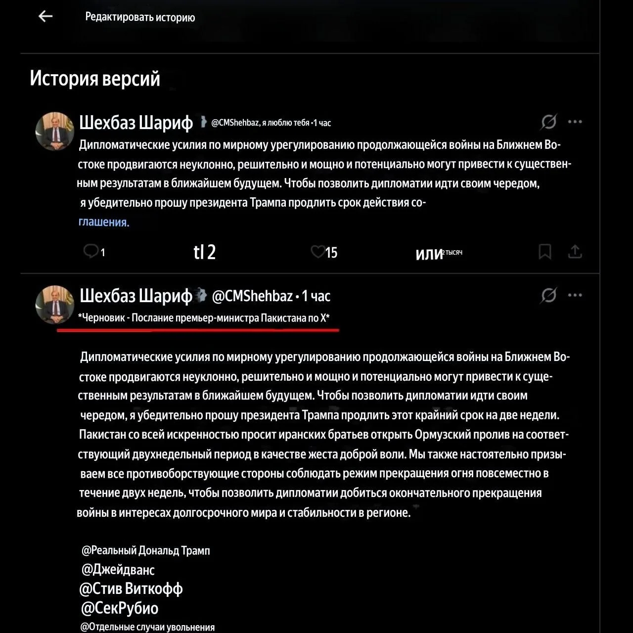 Пост был отредактирован, но заметили это многие, из-за чего в соцсетях активно обсуждается версия, что скорее всего данный текст был отправлен премьеру Пакистана американской администрацией, ведь вряд ли канцелярия самого премьера Пакистана так бы озаглавила черновик.