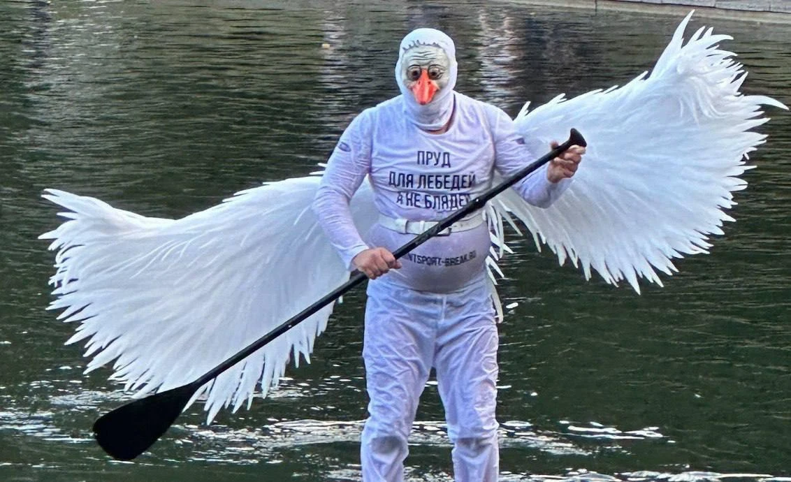 На Патриках человек-птица протестовал против вечных тусовщиков, мешающих пернатым. Акция была в поддержку водоплавающих, которым, по словам активиста, «постоянно урезают территорию и мешают жить нормальной птичьей жизнью».