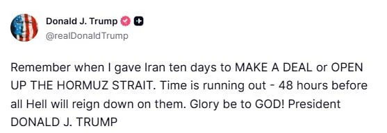 Трамп заявил, что у Ирана осталось 48 часов на заключение сделки с США, или на страну «обрушится ад».