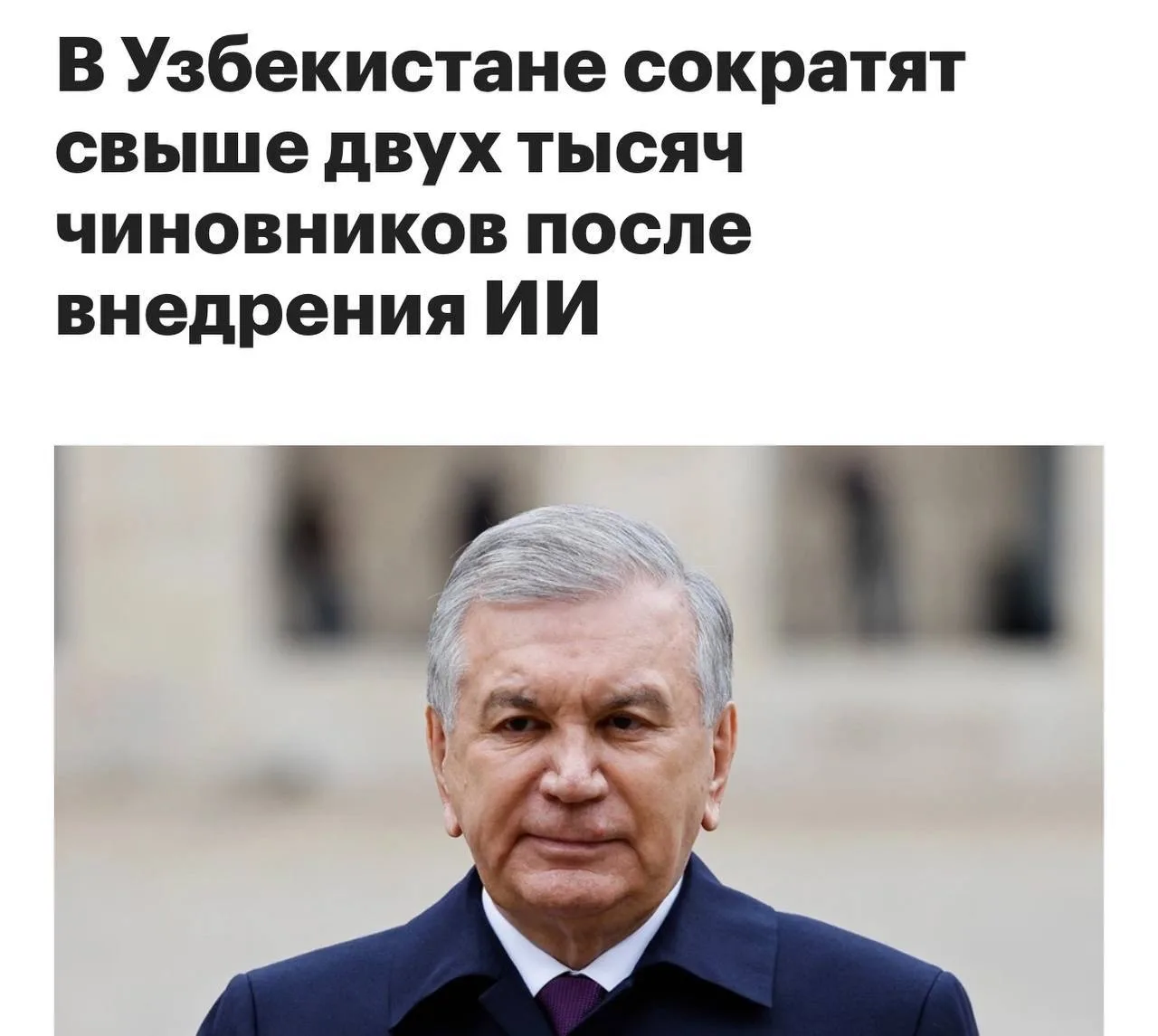 Президент Узбекистана Шавкат Мирзиёев распорядился уволить 2141 чиновника и заменить их работу системами искусственного интеллекта. Чиновники по всему СНГ вздрогнули.