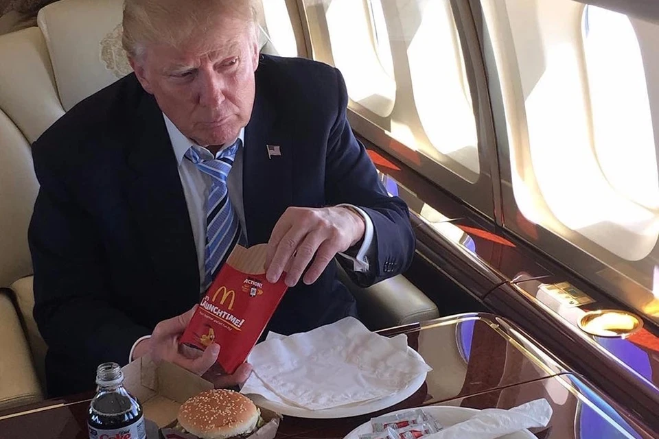 При этом ежедневный рацион Трампа включает в себя не только бургеры из McDonald's, но и пиццу, бекон, мясной рулет и сладкие хлопья. Если бы нужно было описать гастрономические вкусы Трампа одним блюдом, это был бы стейк. И не какой-нибудь medium rare, как любят гурманы, а хорошо прожаренный, почти угольно-коричневый well-done, щедро политый кетчупом. На завтрак он обычно ест яичницу с беконом. Бекон, подрумяненный, но не хрустящий. Минимум церемоний, максимум энергии.