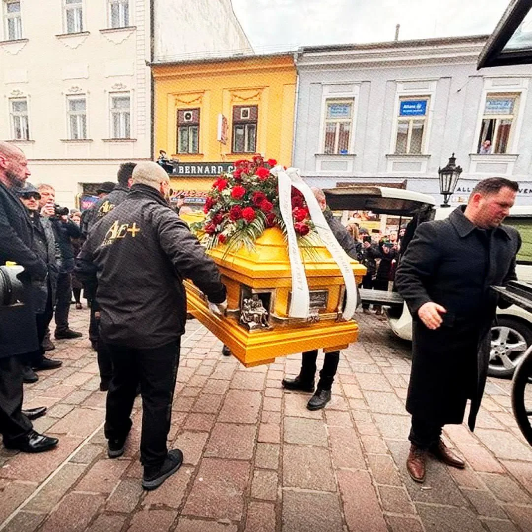 Перед катафалком 1890 года, привезëнным из Чехии, шли два городских стражника, следом оркестр, игравший музыку из фильма «Крëстный отец». и толпа скорбящих, далее роскошные автомобили. Хоронили его, естественно, в золотом гробу.