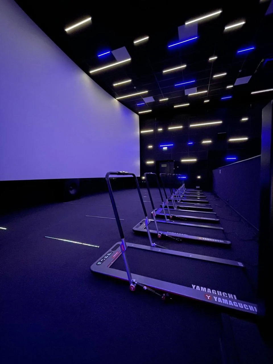 Где-то в России даже прошёл показ с беговыми дорожками. Добровольцы могли проверить себя на выносливость, шагая прямо перед экраном. Только над башкой автомат не держали.
