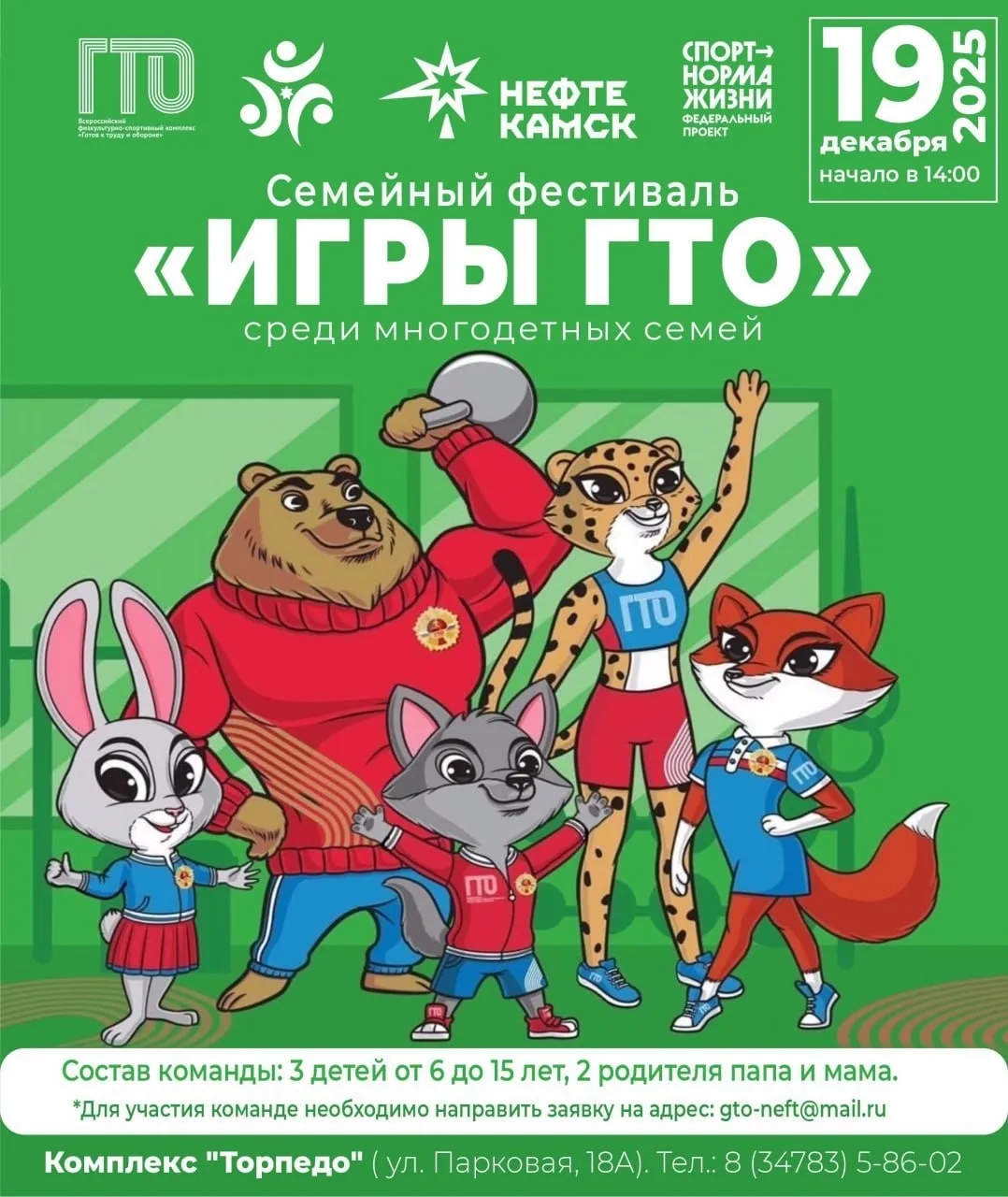 Приглашаем многодетные семьи на спортивный праздник! Состав команды: 3 детей и 2 родителя либо законные представители. Приходите на фестиваль за званием самой спортивной и дружной семьи города!
