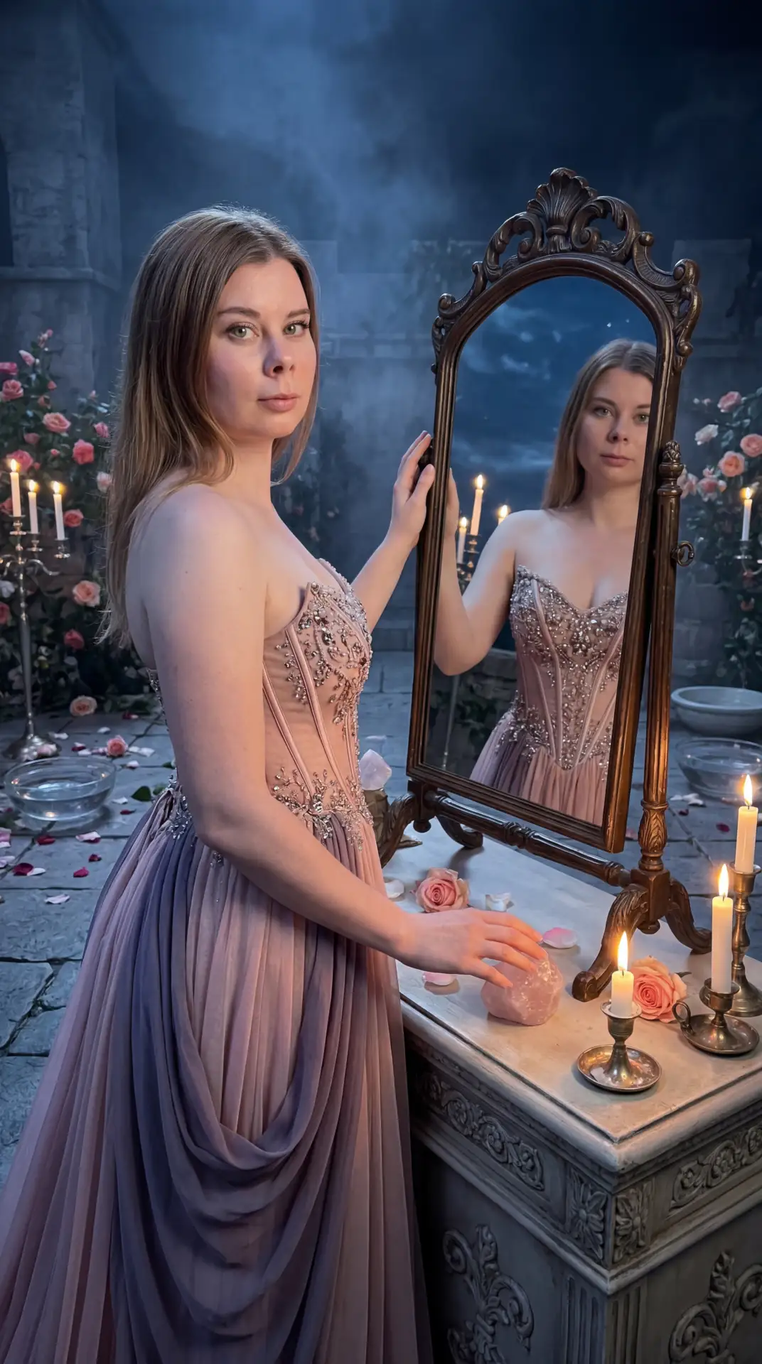 Махровое полотенце, халат, матовая косметика. Нейросеть отлично ловит настроение, если точно задать свет и фактуру.