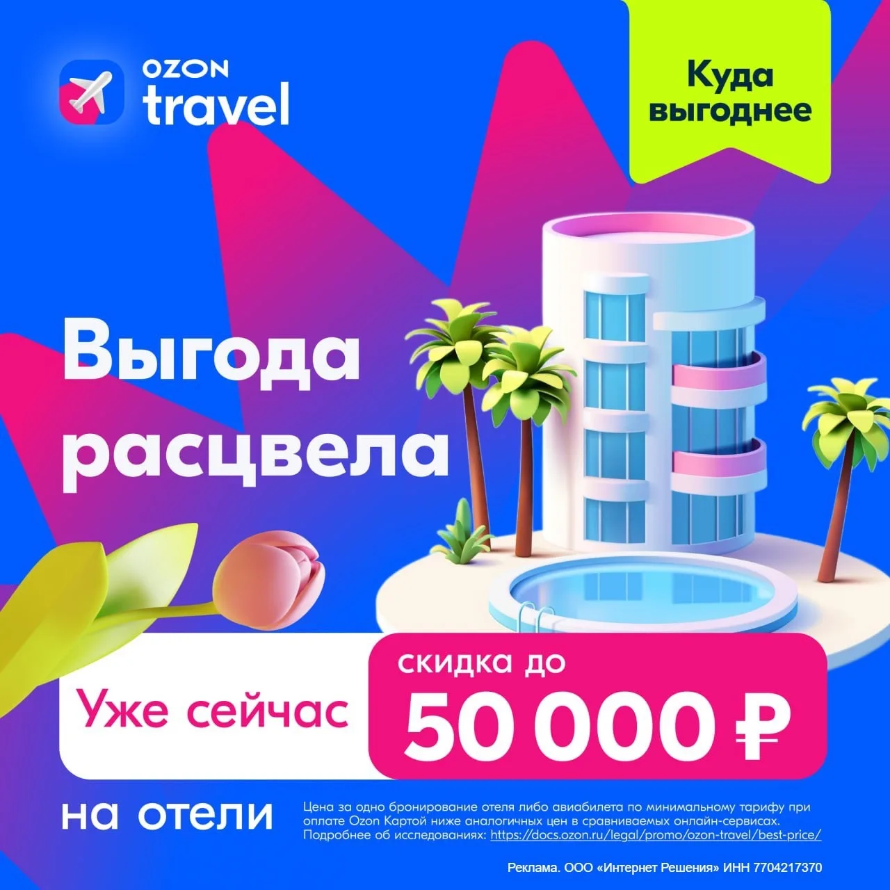 🌷На Ozon Travel расцвела выгода до 50 000 ₽