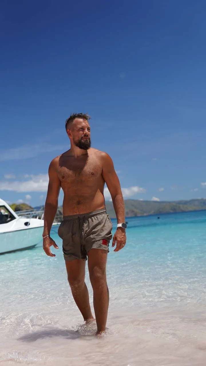 В яхт-турах это вторая точка для остановка. Песок реально розовый! В воде вокруг Комодо живут кораллы с красноватым оттенком - когда они разрушаются, их мелкие частицы попадают на берег и дают белому песку такой оттенок.