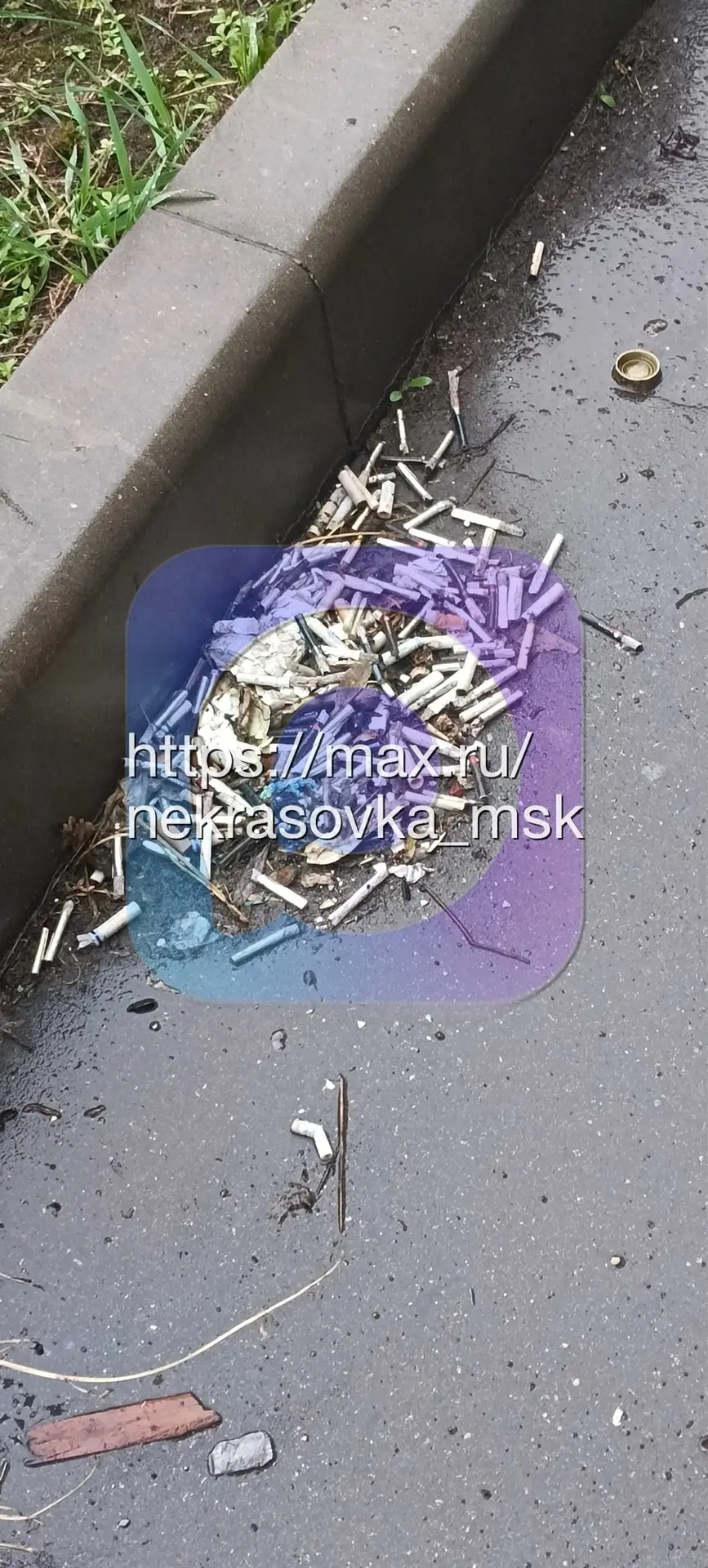 Везде такие кучи , ещё и на траву. Сейчас чуть на голову окурок горящий не прилетел. Прям передо мной упал.