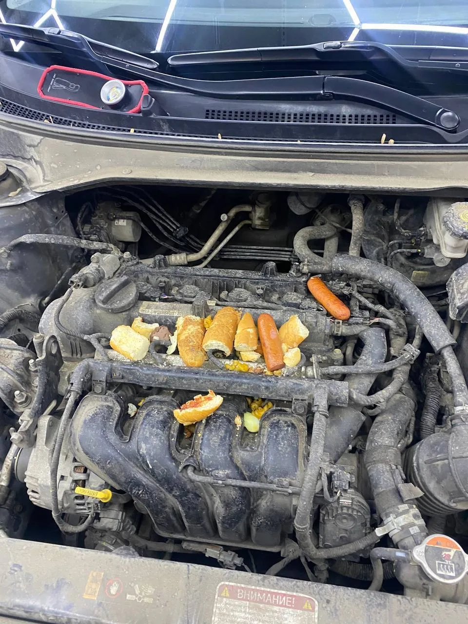 Сегоня ночью машина стояла возле мусорки на ул. Вертолетчиков 21к5, вот что обнаружил под капотом